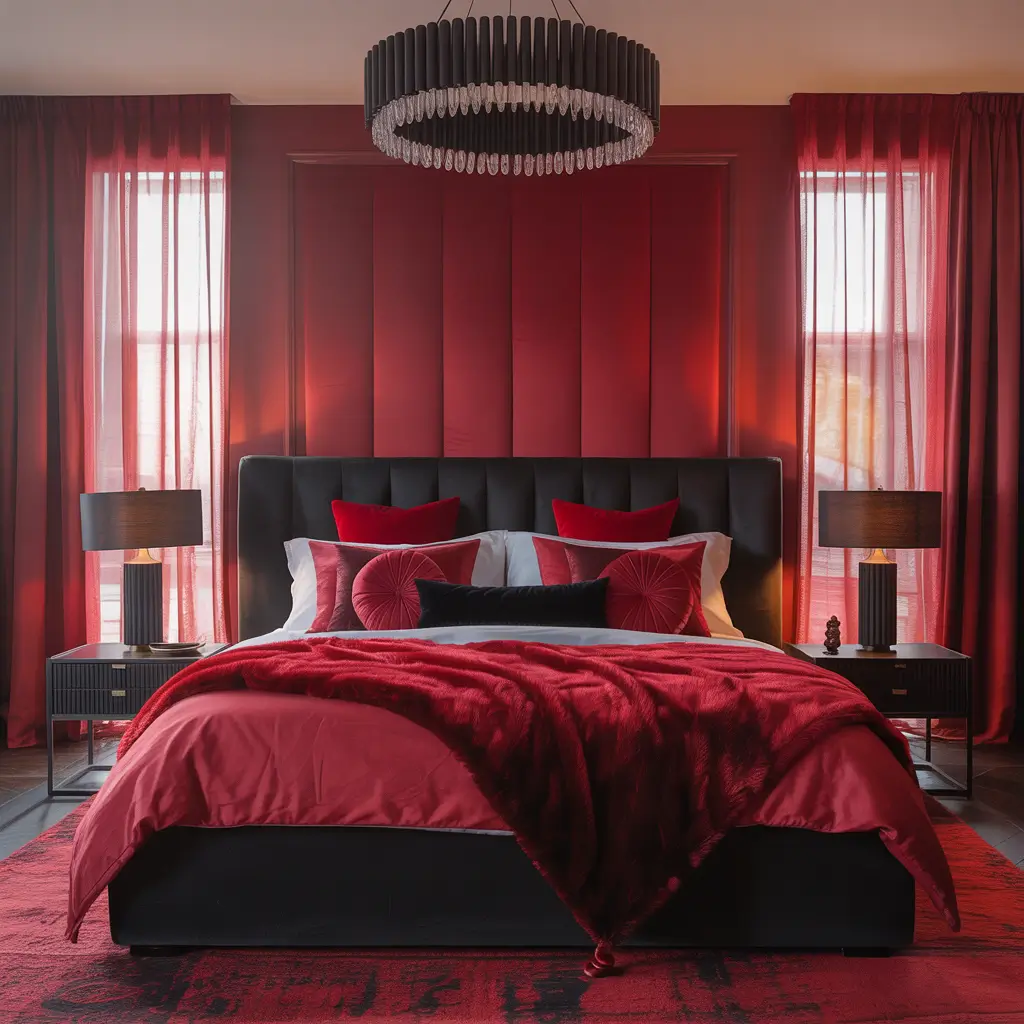 Elegant Red and Black Master Bedroom