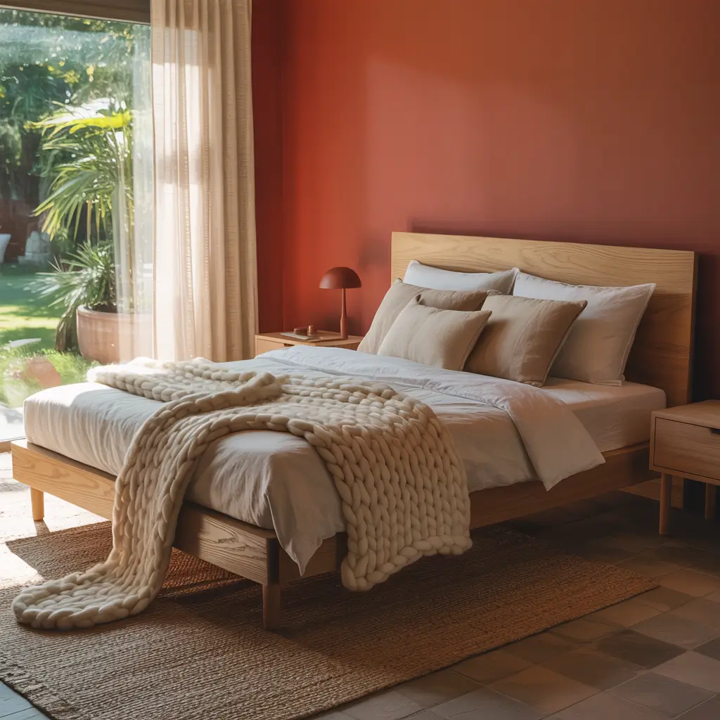 Red and wood together create a warmth that feels like a permanent golden hour. My current bedroom uses this combo, and even on grey mornings, it feels sunny and welcoming.