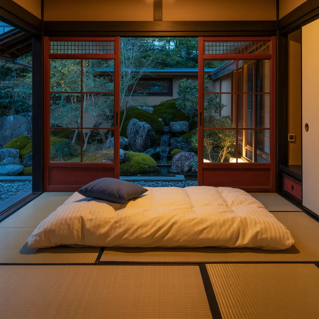 - Shoji screen elements (with red panels)
