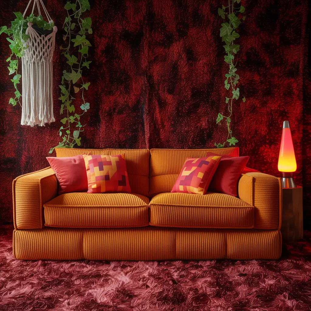 - Burnt orange and red combo (the 70s power couple)