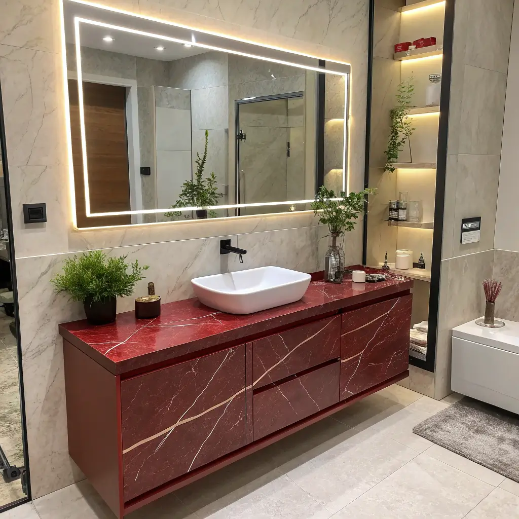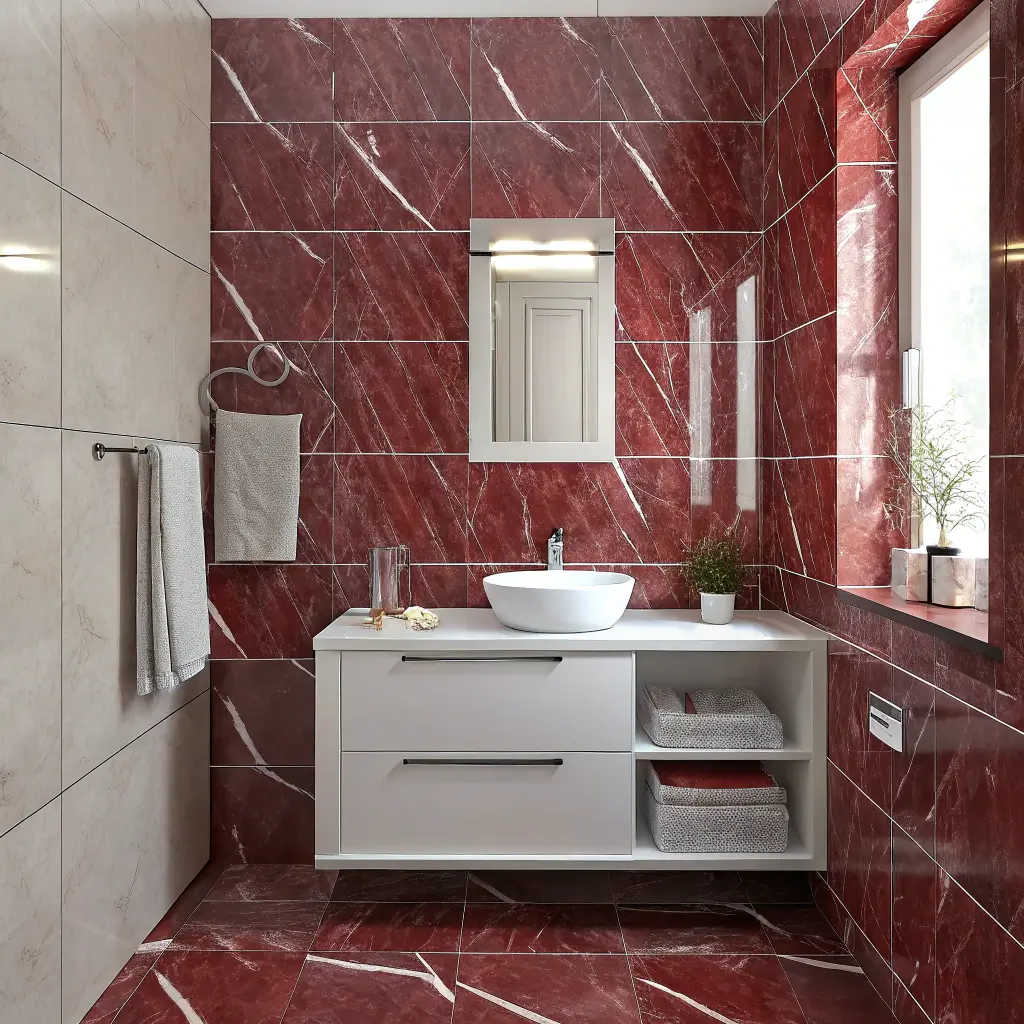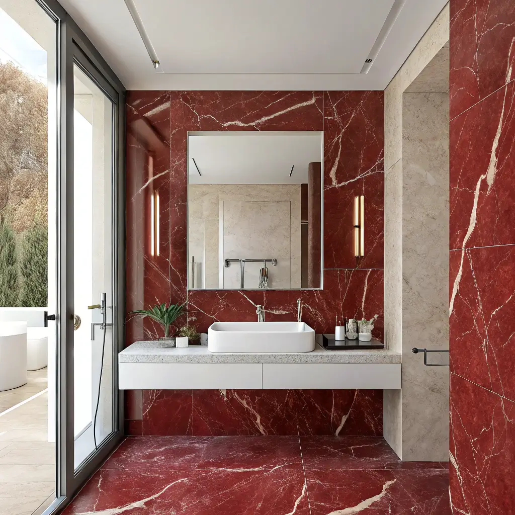 I recommend using real red marble where it’s most visible (like a vanity top) and alternatives in less prominent areas. This strategic approach delivers authentic luxury where it counts while keeping the budget manageable.