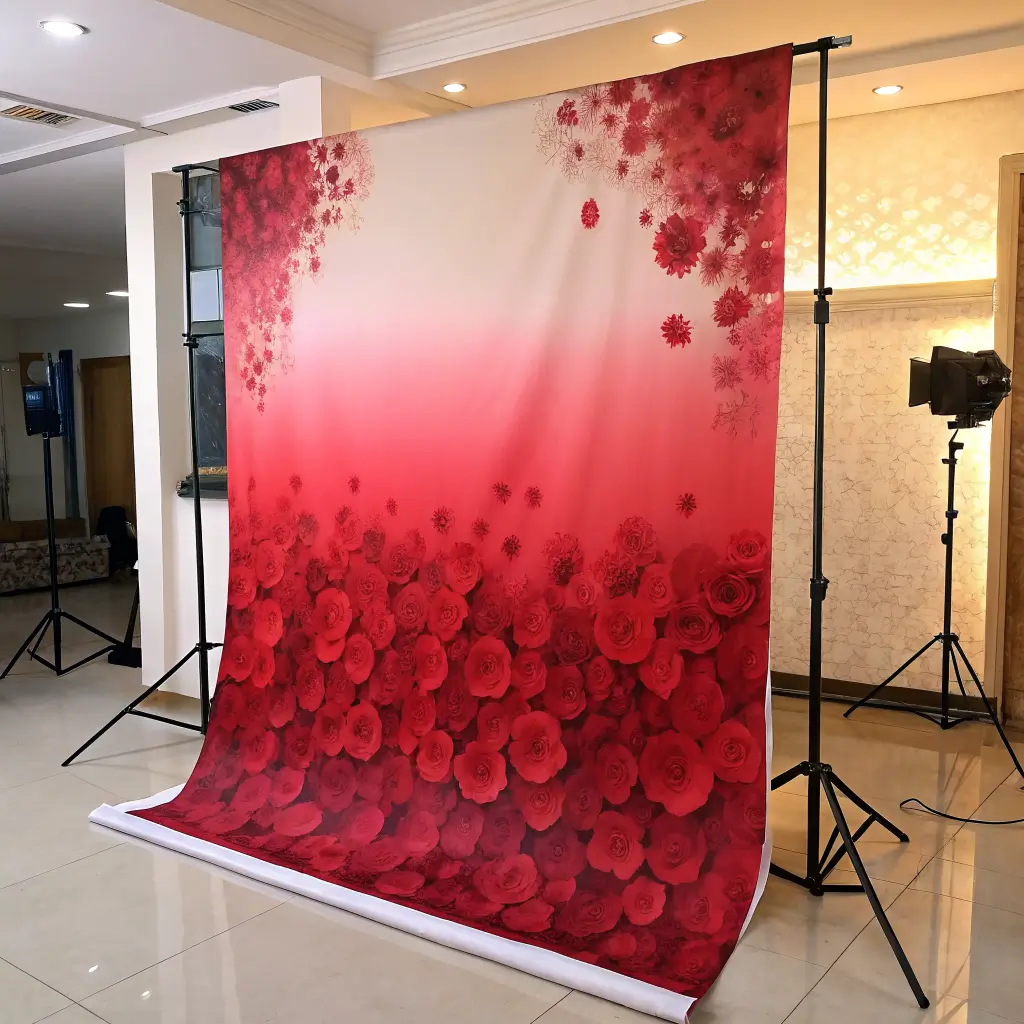 An ombre red flower wall backdrop adds a huge wow factor. It works perfectly behind the cake table, near the entrance, or in a photo booth area. If you want guests to keep saying, “Wait, let me take one more picture,” this backdrop handles that job.