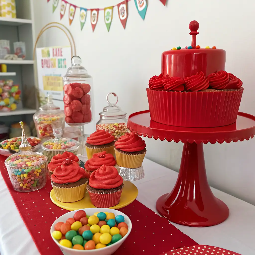 A candy red dessert table display gives your party a sweet centerpiece that guests will notice right away. It combines decor and treats, which feels efficient and honestly kind of genius. Why decorate one table when sugar can help?