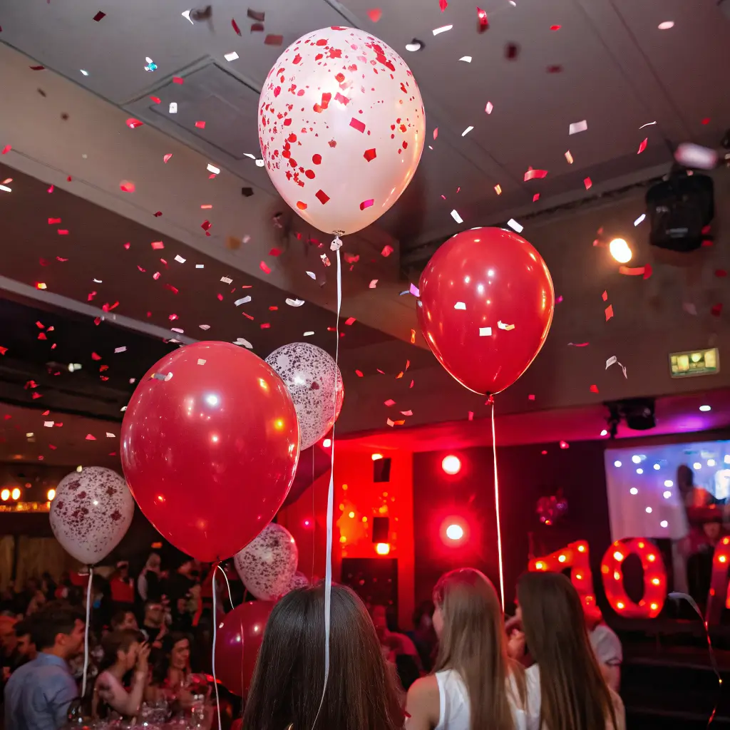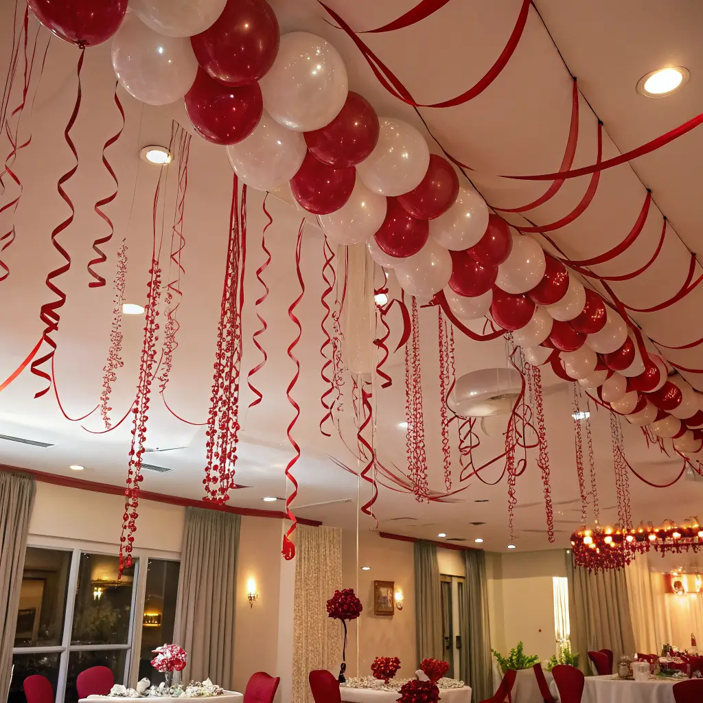 If you want decor that feels playful and fresh, red and white confetti balloons do the trick. They lighten the overall look of a red theme and add a party vibe without much effort. Sometimes the easiest decor pieces do the most work, which feels rude to the expensive ones.