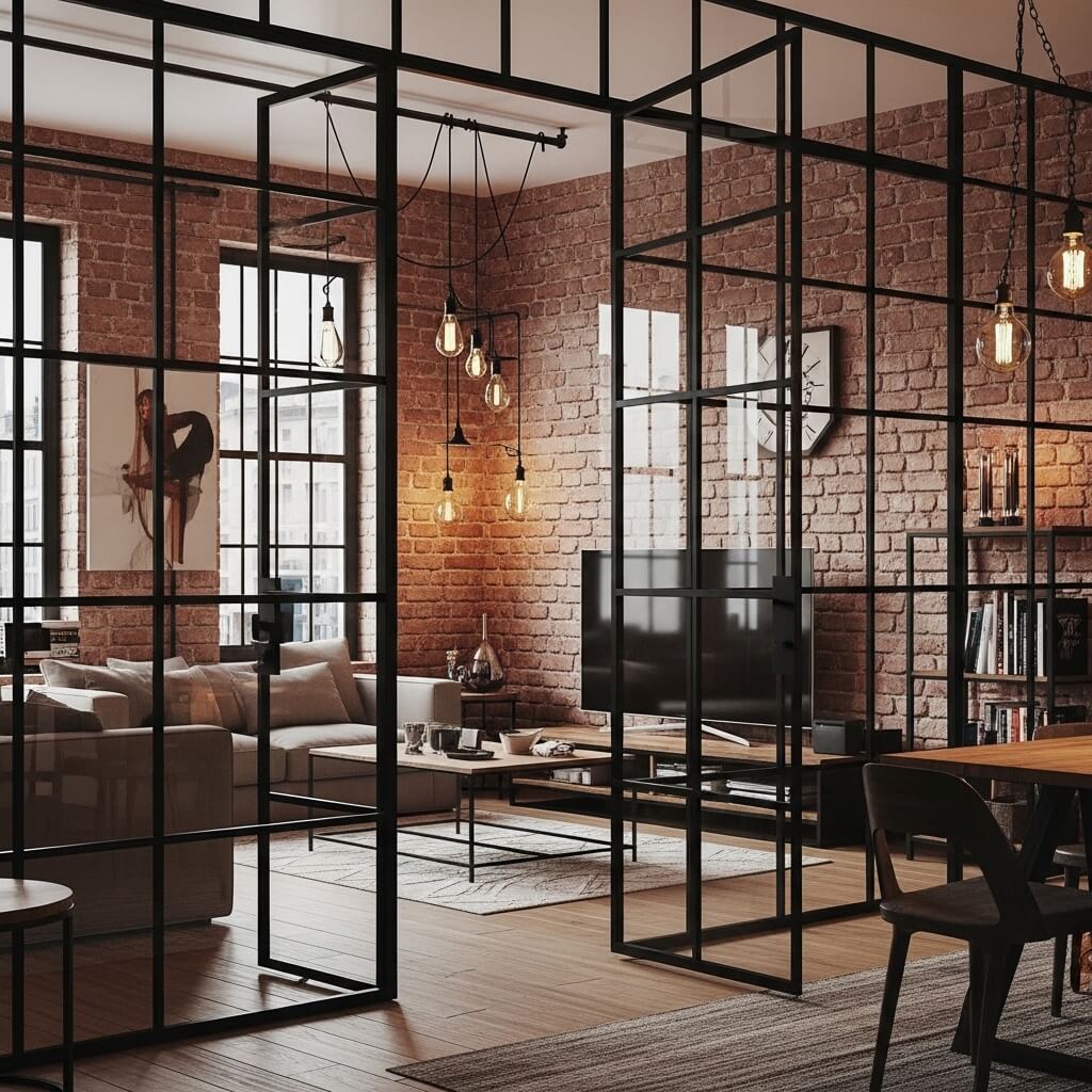 Want that edgy, urban loft vibe? Industrial metal frame dividers bring serious style points. These typically feature black metal frames—sometimes with glass, mesh, or left open—that create bold architectural statements while dividing spaces.