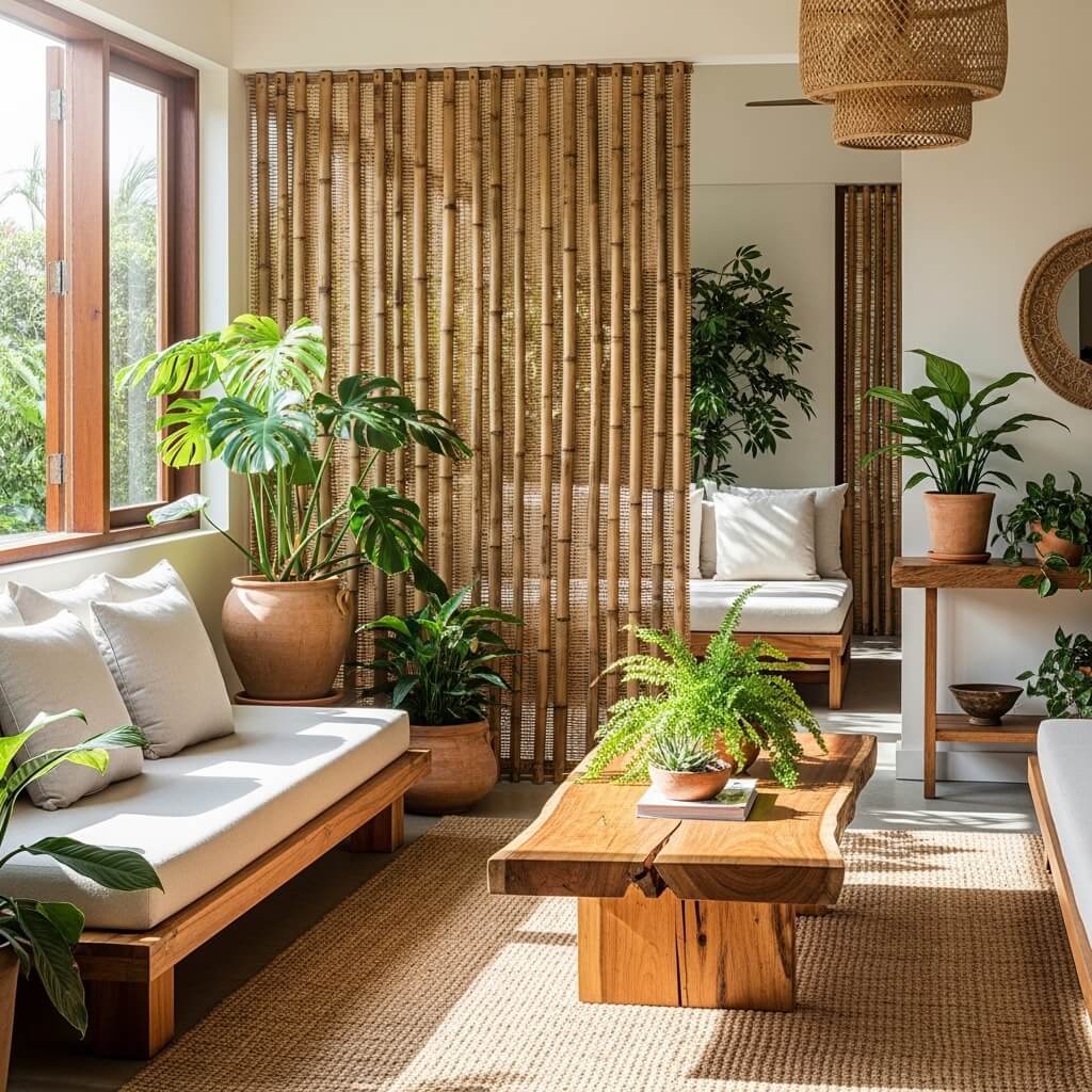 If you want something lightweight, natural, and slightly exotic-feeling, bamboo curtain dividers hit that sweet spot. They’ve got this relaxed, tropical vibe that makes any space feel more vacation-like and less “Monday morning deadline stress.”