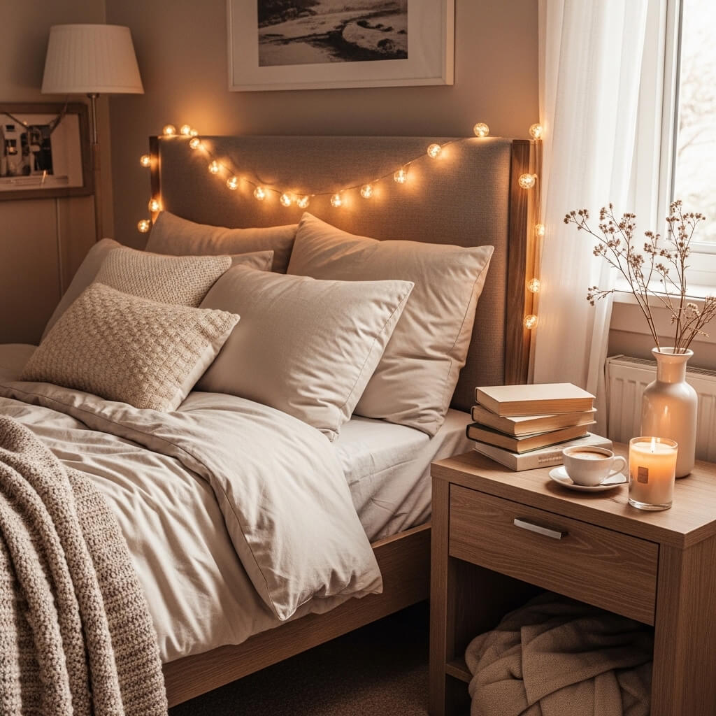 Warm lighting makes all the difference. Ditch those harsh overhead lights that make your room feel like a hospital ward. Instead, opt for string lights, table lamps with warm bulbs, and maybe a Himalayan salt lamp if you’re feeling fancy. The goal is to create ambient lighting that makes your room feel like a perpetual golden hour.
