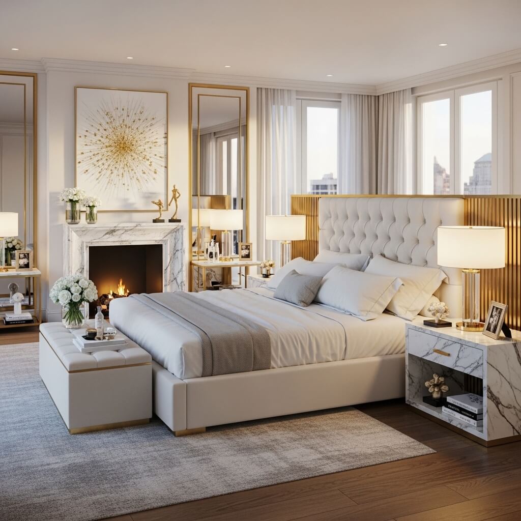 Creating a luxury bedroom doesn’t necessarily mean spending luxury prices. It’s about choosing quality over quantity and paying attention to details that create an upscale feeling.