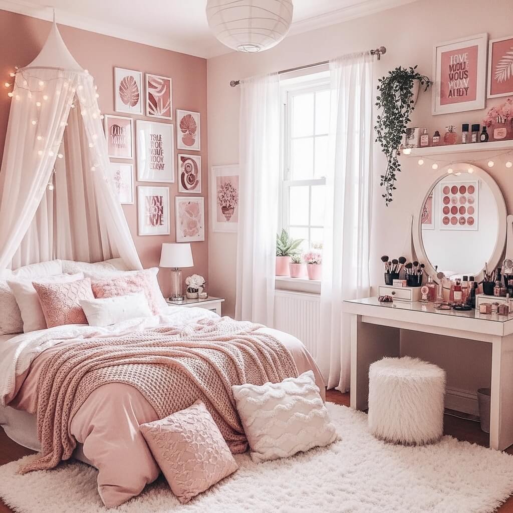 Girly room aesthetics can range from soft and romantic to bold and playful. The key is creating a space that feels unabashetically feminine and fun.