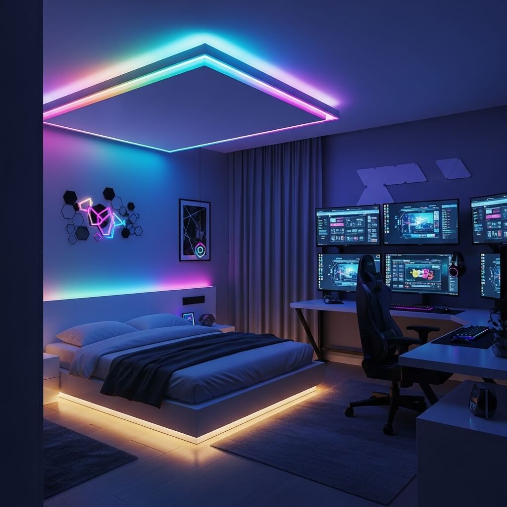 Placement matters more than you’d think. Running LED strips along the ceiling perimeter creates an ambient glow that makes your ceiling appear higher. Behind your TV or monitor reduces eye strain and looks sleek. Under your bed creates a floating effect that’s genuinely cool.