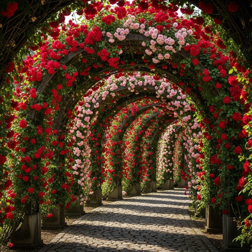 Timing your rose selection matters here. Choose varieties that bloom simultaneously for maximum impact, or select ones that bloom in succession to extend the tunnel effect throughout the season. Climbing Eden and New Dawn work beautifully together, providing waves of blooms from early summer through fall.