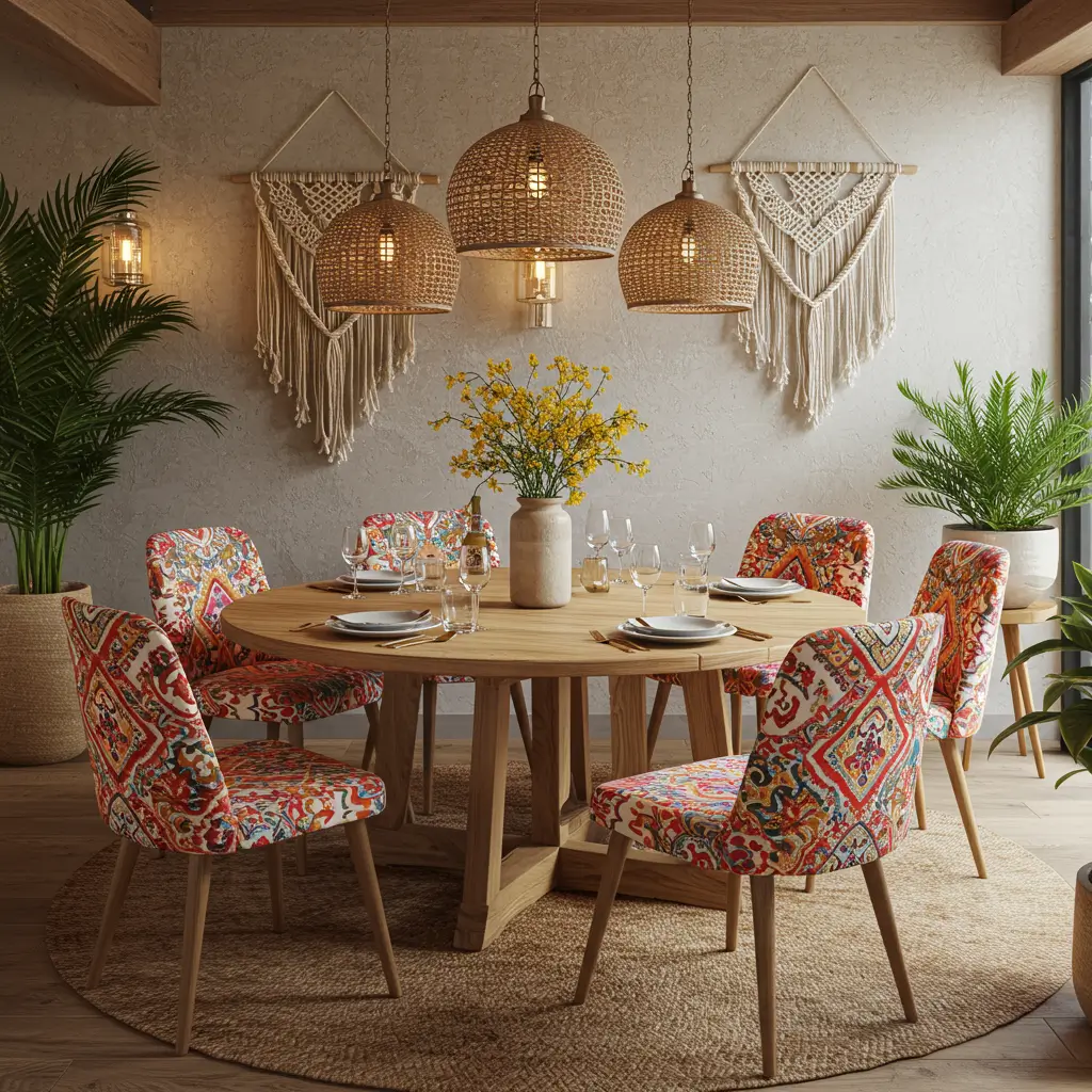 Without an anchor, boho becomes chaos. A simple round table grounds all the pattern and color, providing visual rest. My plain wooden round table lets the chairs and accessories be the stars without overwhelming the space.