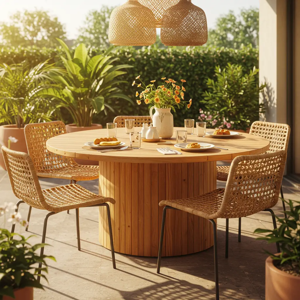 Outdoor round dining tables extend your living space and create magical al fresco dining experiences. After adding a proper round patio table, we eat outside from April through October, and those meals always feel more special.