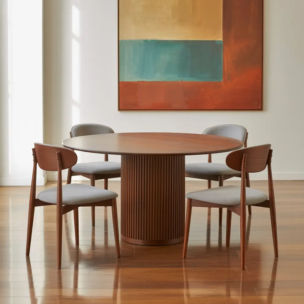 A minimalist wooden round table strips dining down to its pure essence — beautiful wood, clean lines, and absolutely nothing extra. After years of ornate dining sets, my minimalist wood table feels like a breath of fresh air every time I sit down.