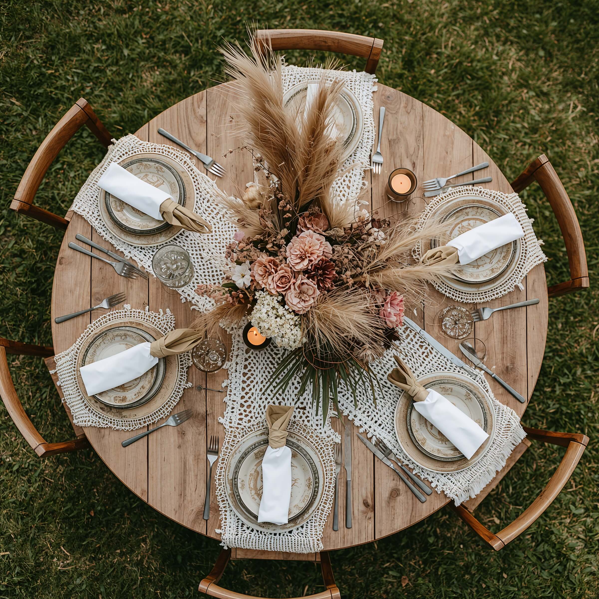 Boho Pampas Grass Round Table Styling