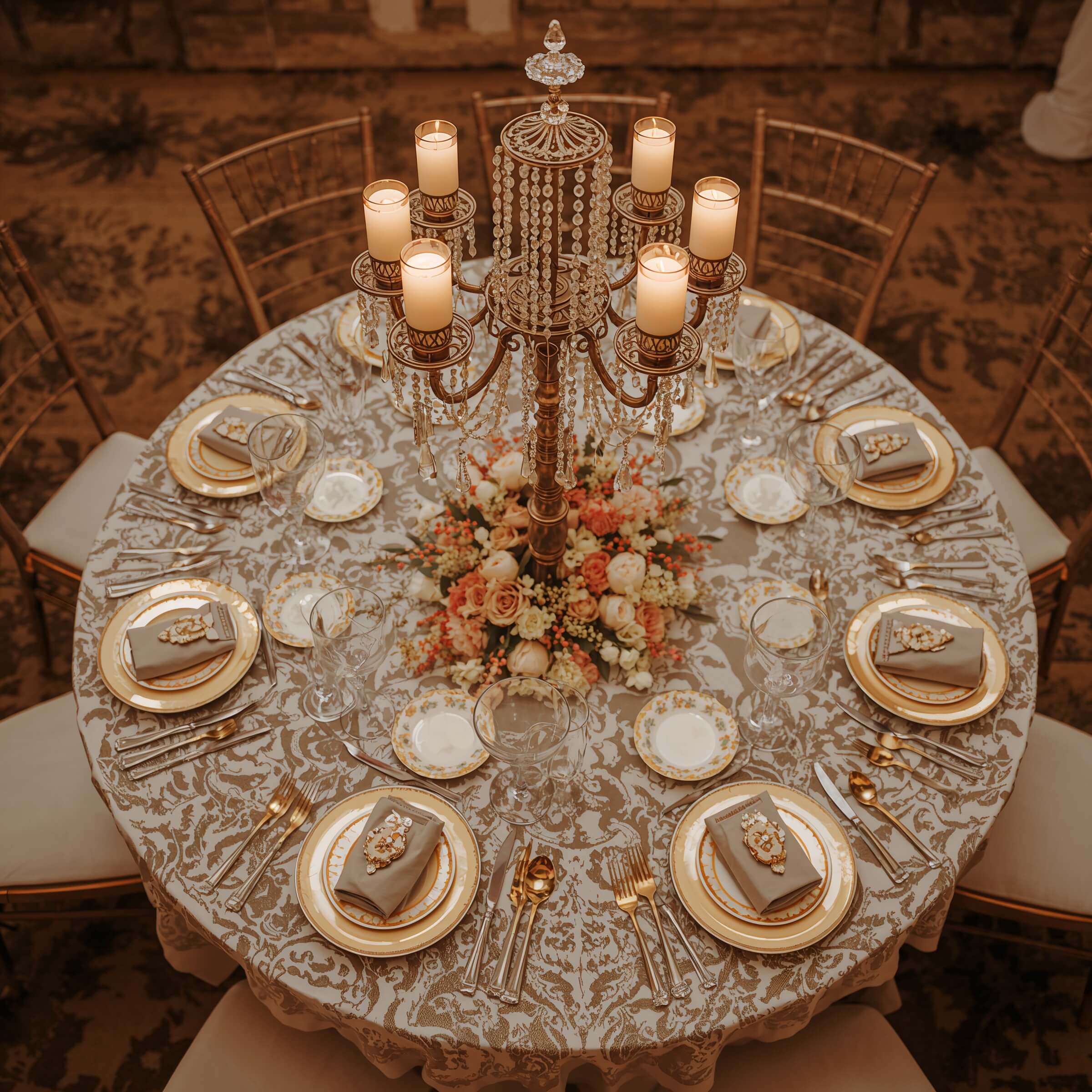 Don’t forget about fresh flowers in crystal vases. White roses, peonies, or hydrangeas look stunning against crystal, while cascading orchids add that extra touch of luxury. IMO, this setup works best for evening receptions when all that crystal can really catch and reflect the ambient lighting.