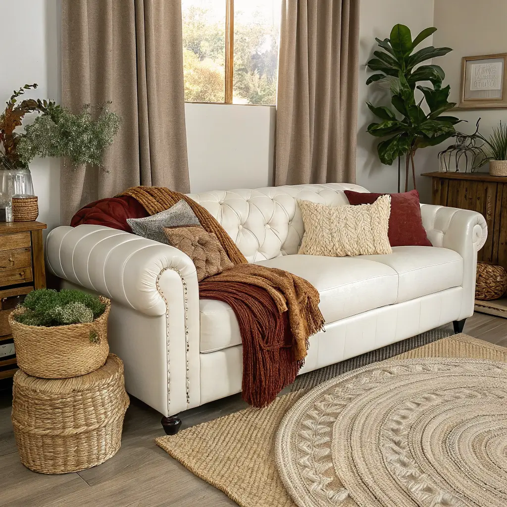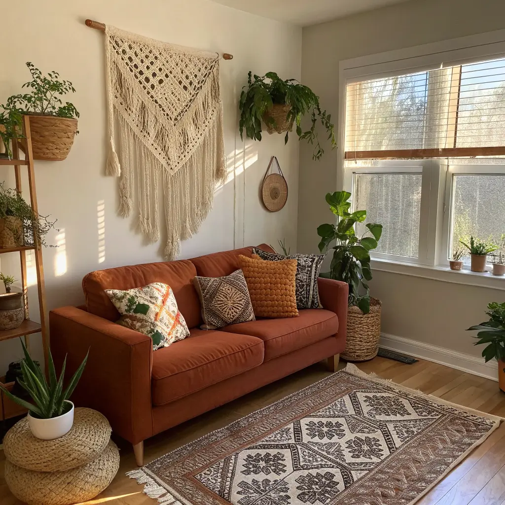 The secret to boho with a rust couch is embracing maximalism without chaos. Your rust sofa provides the anchor that lets you go wild with patterns and textures. I have Moroccan pillows, Mexican blankets, and Indian block prints all living harmoniously because that rust base ties everything together.