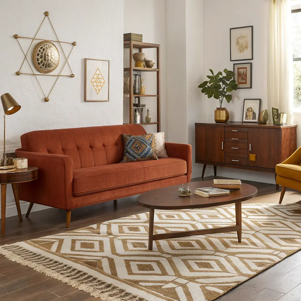Mid-century design principles align perfectly with rust’s warm, earthy appeal. The style celebrates natural materials, warm woods, and that perfect balance between form and function.