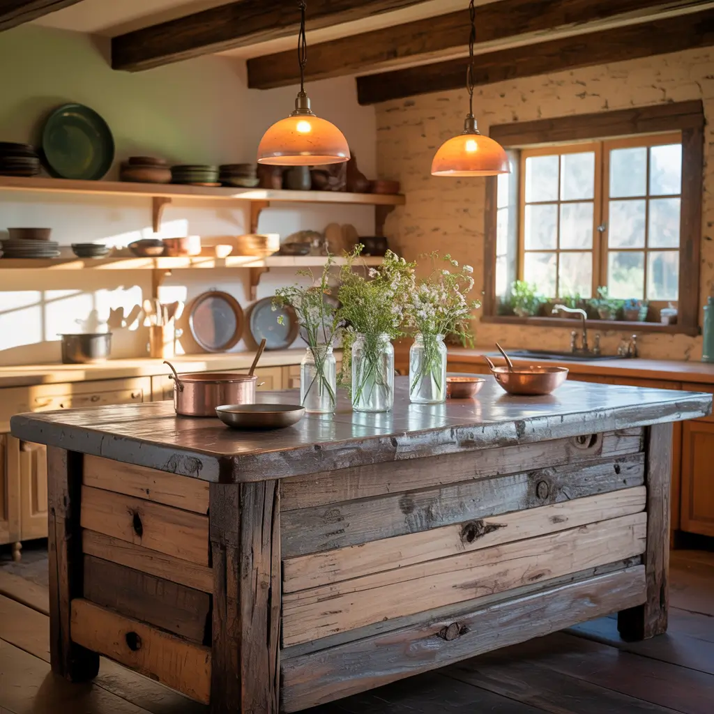 Old doors make incredible island tops when laid flat. Vintage farm tables can be retrofitted with wheels and storage. Even industrial workbenches transform into rustic masterpieces with minimal effort.