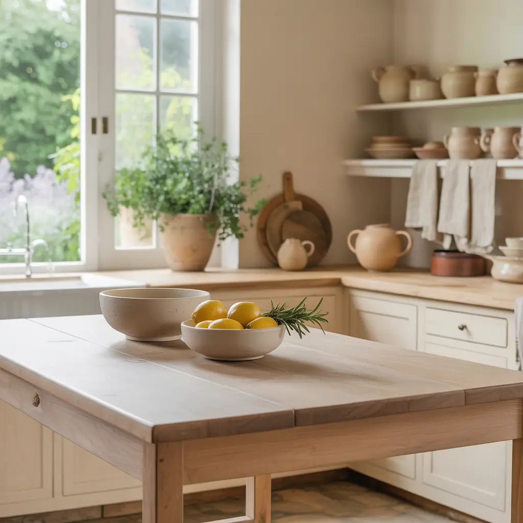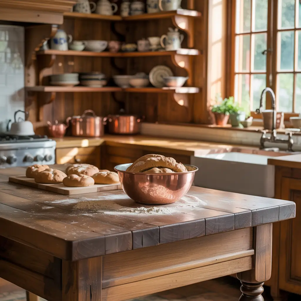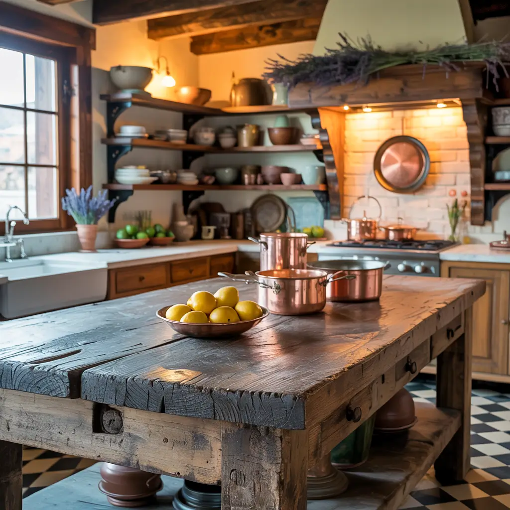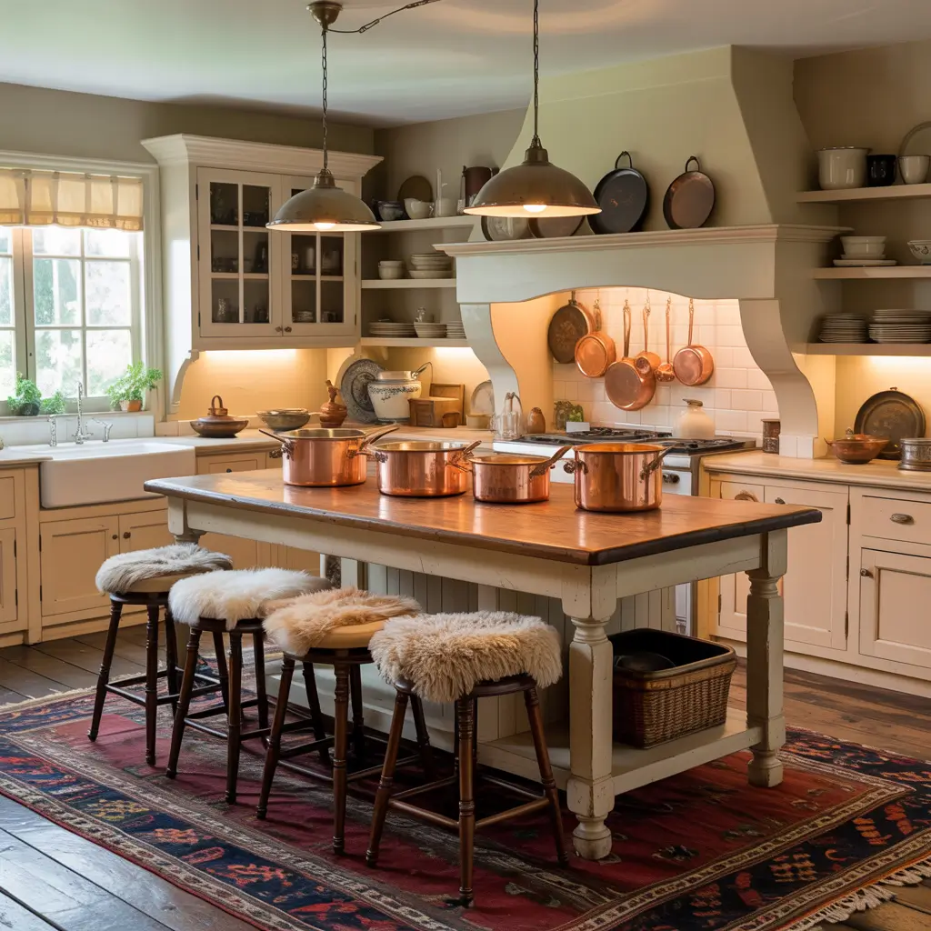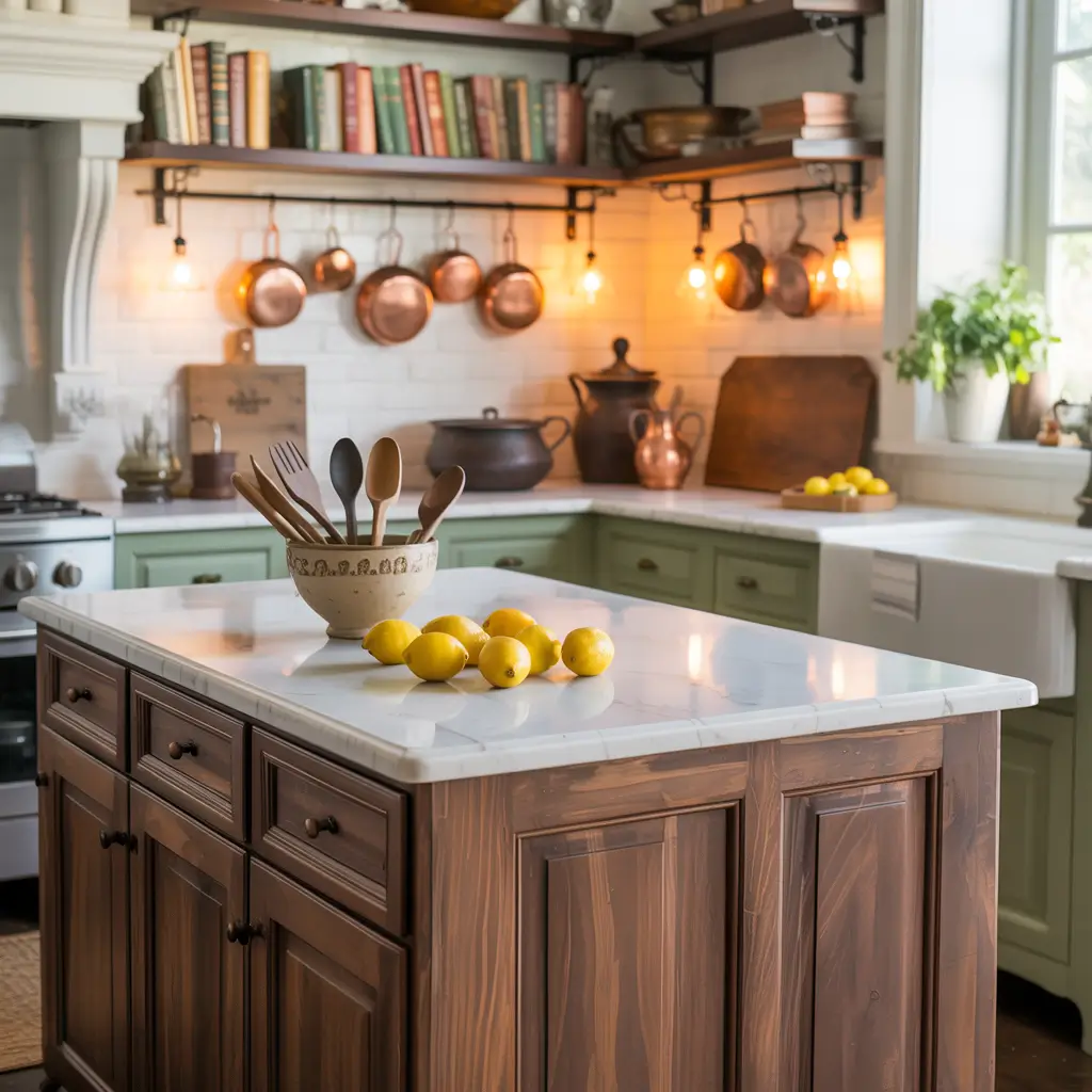 My kitchen has a 1920s baker’s table as an island, but I topped it with a modern quartz surface. Best of both worlds – vintage charm with surfaces I can actually sanitize 🙂