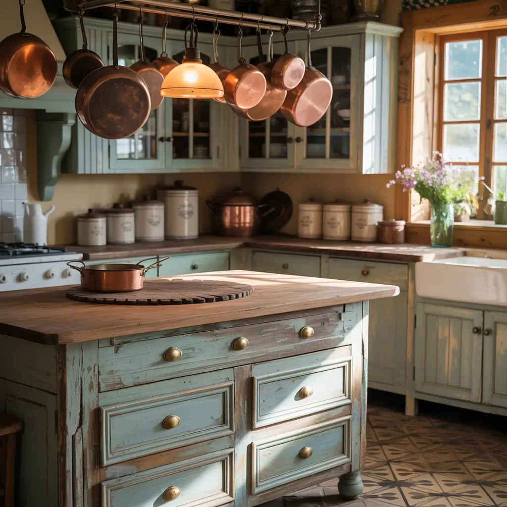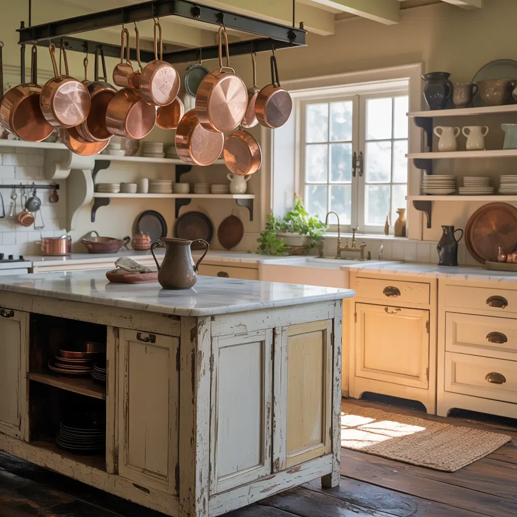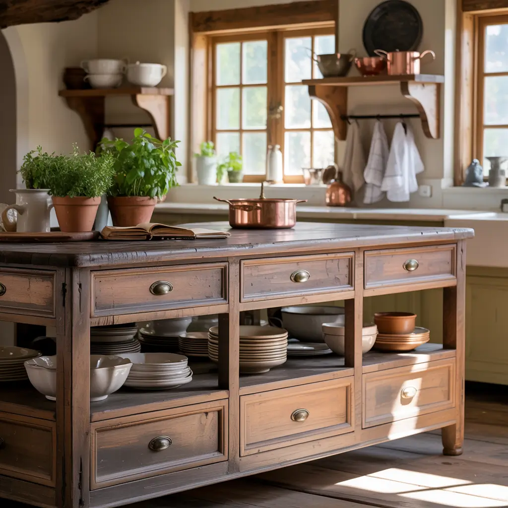 Vintage hardware makes new pieces feel old. Glass knobs, bin pulls, and cast iron handles instantly age any island. Hit up architectural salvage yards for authentic pieces, or check out reproduction hardware that captures the look without the rust.
