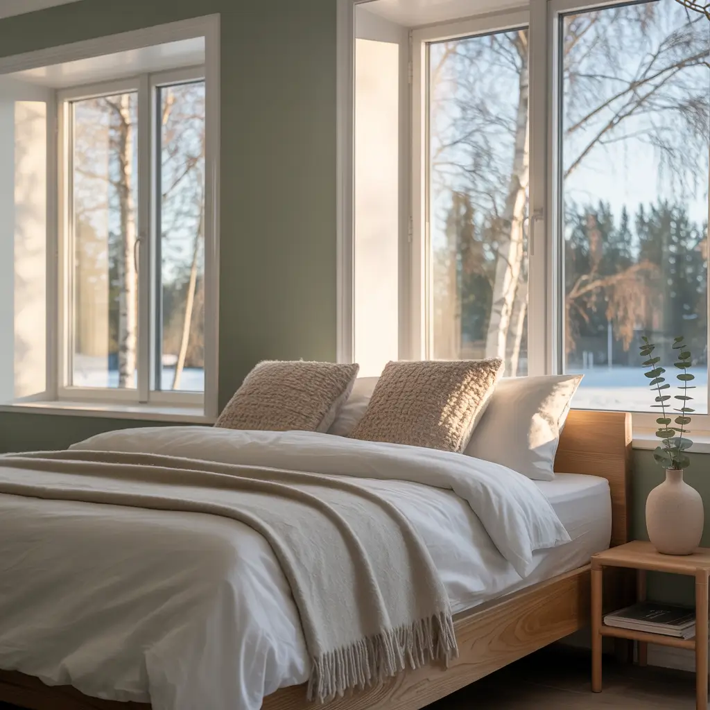 3. Minimalist Sage Green and Grey Scandinavian Bedroom