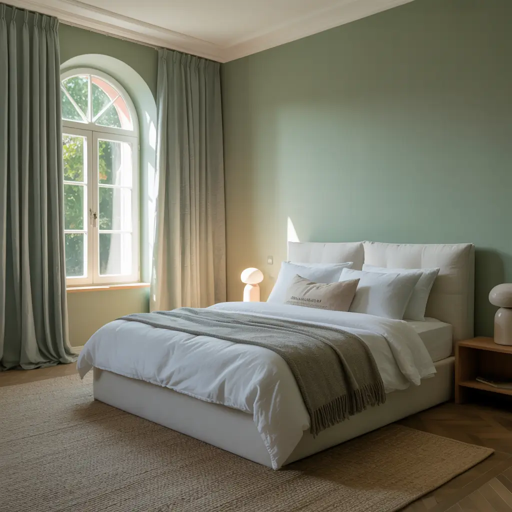 Pro tip: Get blackout lining for those grey curtains. Sage green walls look amazing in natural light, but you also want to actually sleep sometimes, right?