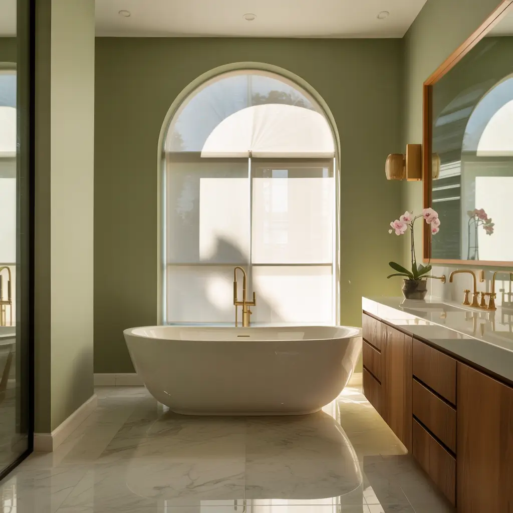 What really makes this combo work is the balance. Sage green keeps things grounded and natural, while gold adds that touch of glamour. You’re essentially creating a space that feels both expensive and approachable. And here’s a pro tip: add some white marble countertops to this mix, and you’ve got yourself a bathroom that looks straight out of a luxury hotel.