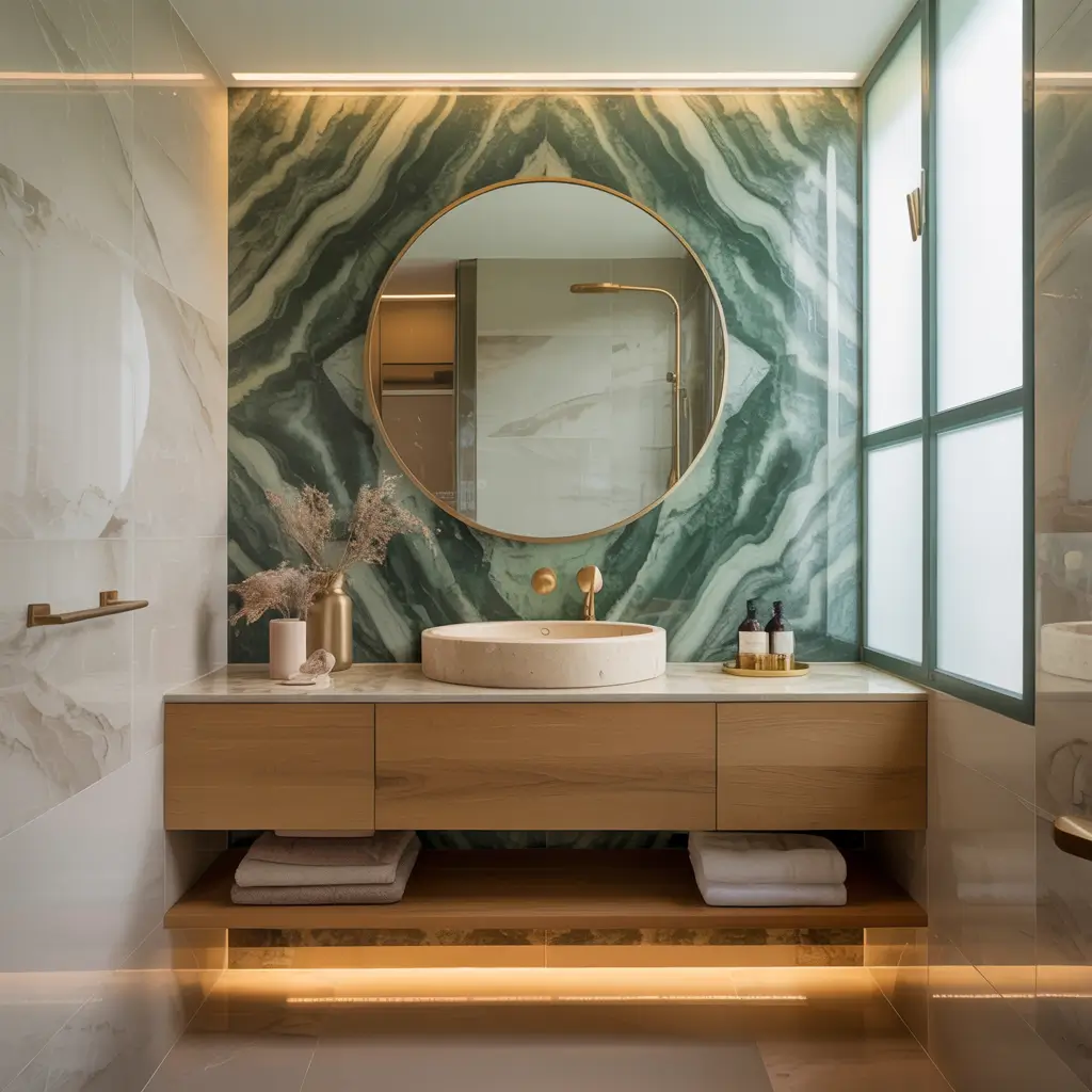 • Green marble (yes, it exists!) for the ultimate monochromatic look