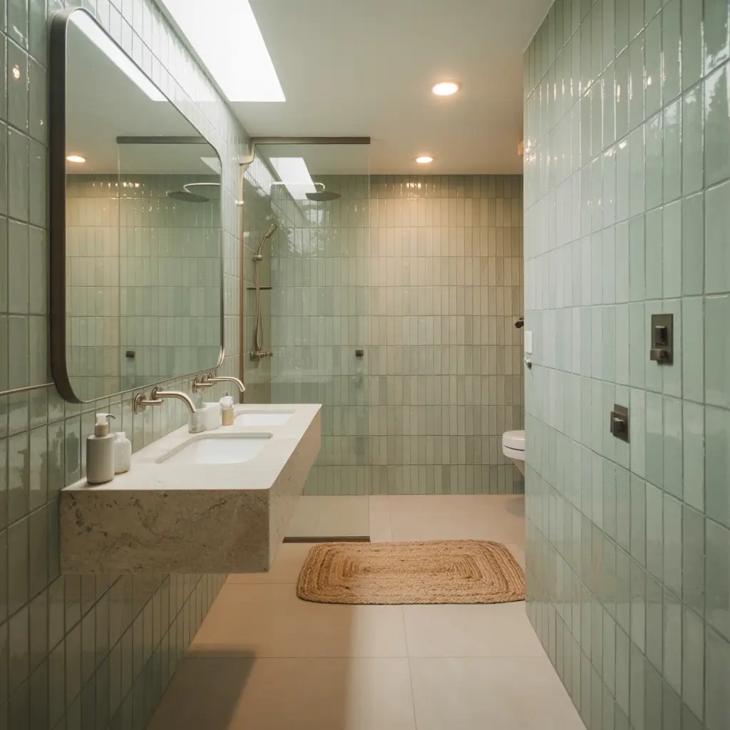 The modern approach to sage green tiles isn’t about covering every surface. Instead, you’re creating strategic moments of color that draw the eye. Consider these tile options: