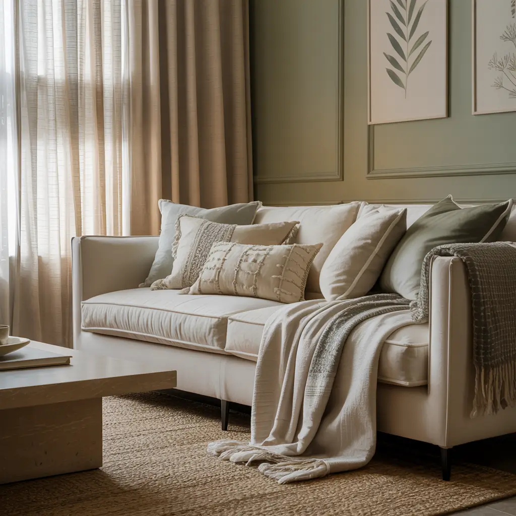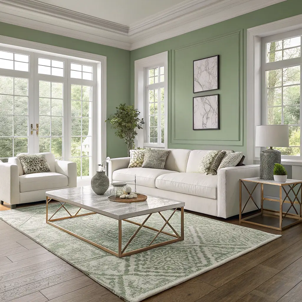 Add different shades of both colors for depth. Not all whites are created equal – mix warm and cool whites. Same with sage – layer light and darker tones. My living room has at least three shades of each, and it prevents that flat, one-note look.