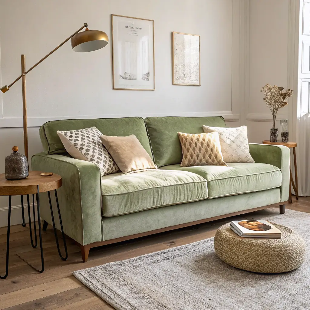 Layer textures to prevent your sage sofa from looking flat. I mix velvet pillows with linen, add a chunky knit throw, maybe a leather pillow for contrast. The different textures catch light differently and create visual interest.