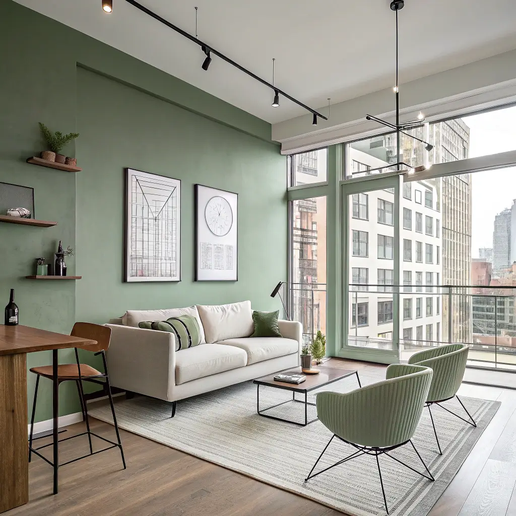 Contemporary sage works because it adds personality without permanent changes. Can’t paint? Sage sofa. White walls boring you? Sage curtains. The color brings life to neutral rentals without risking your deposit.