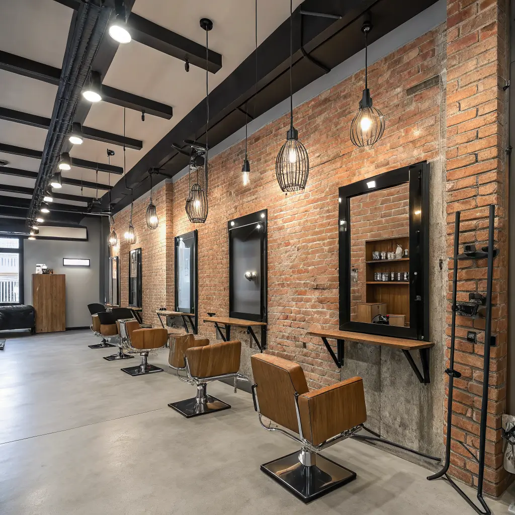 Industrial style in salons works because it’s honest about what it is – a working space where transformation happens. Exposed elements become features, not flaws to hide.