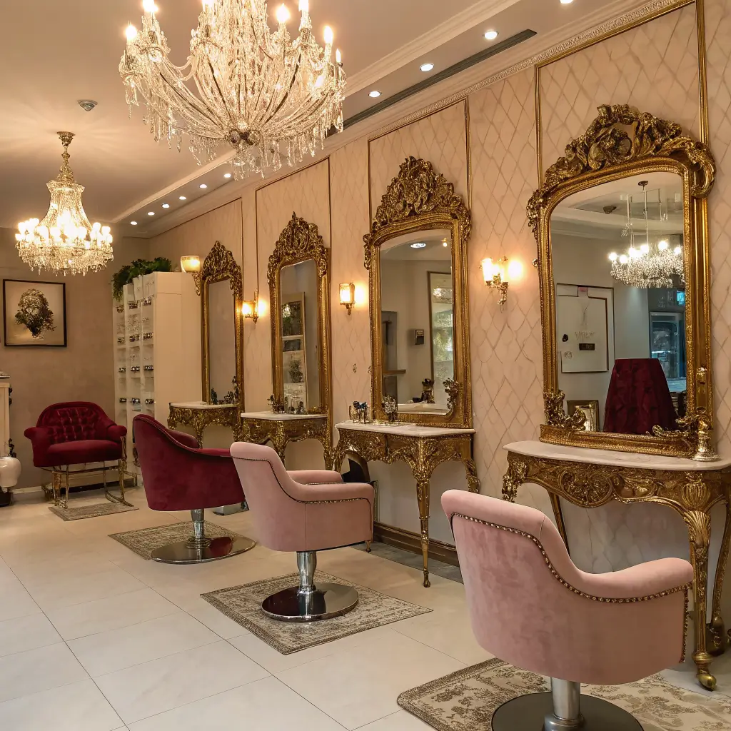 Gold accents in a salon say “you’re worth it” before anyone touches your hair. But there’s a fine line between luxe and tacky – I’ve seen both, and trust me, you want to land on the luxe side.