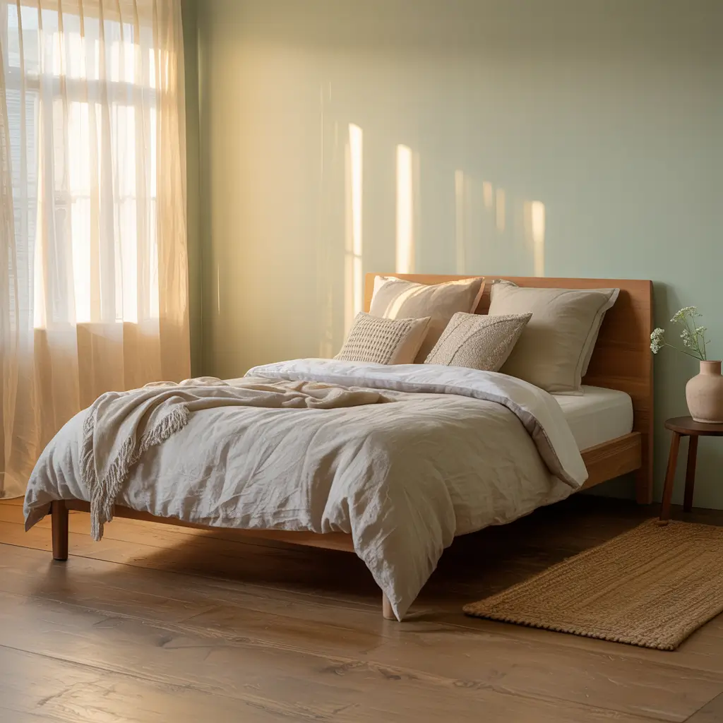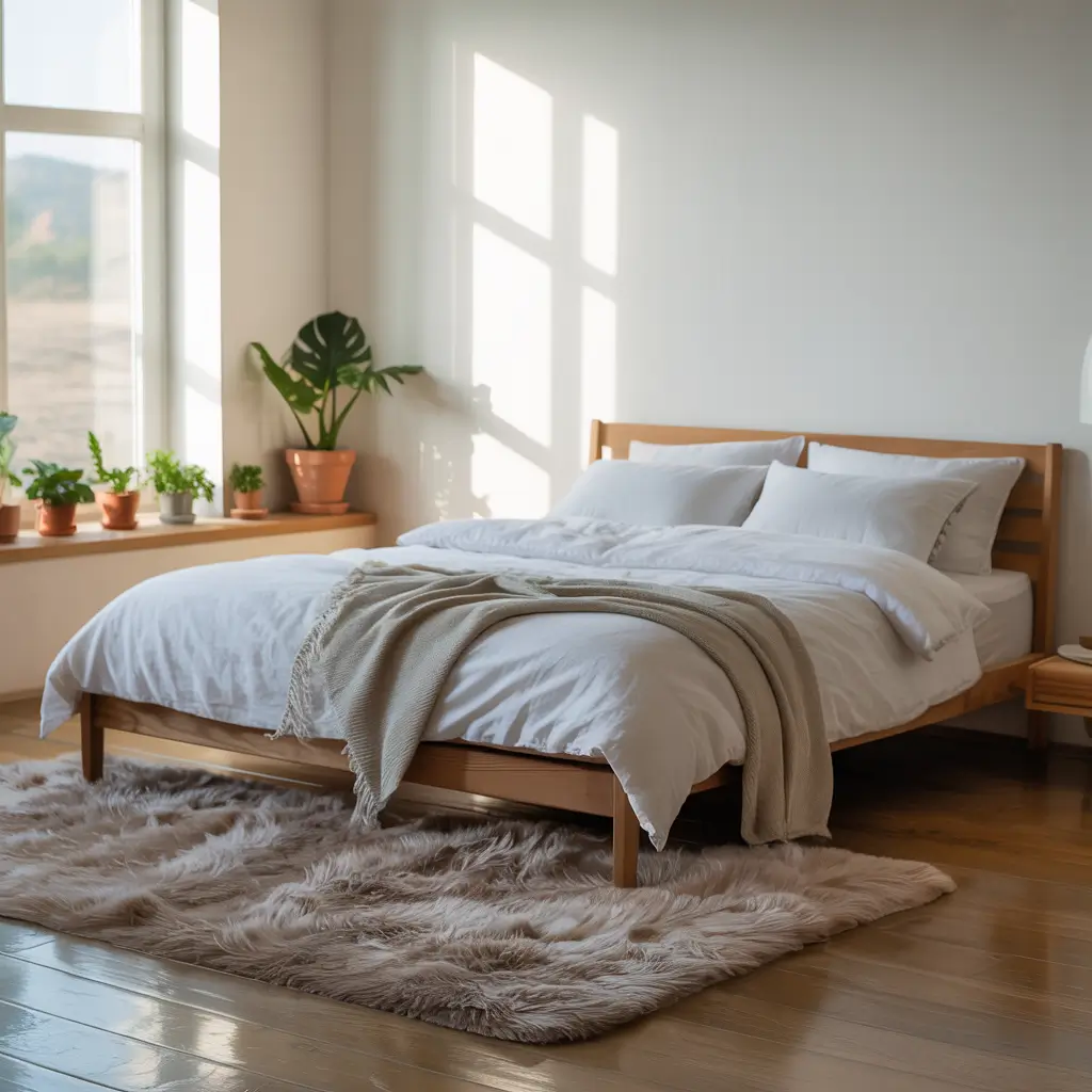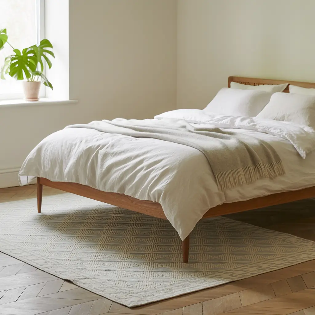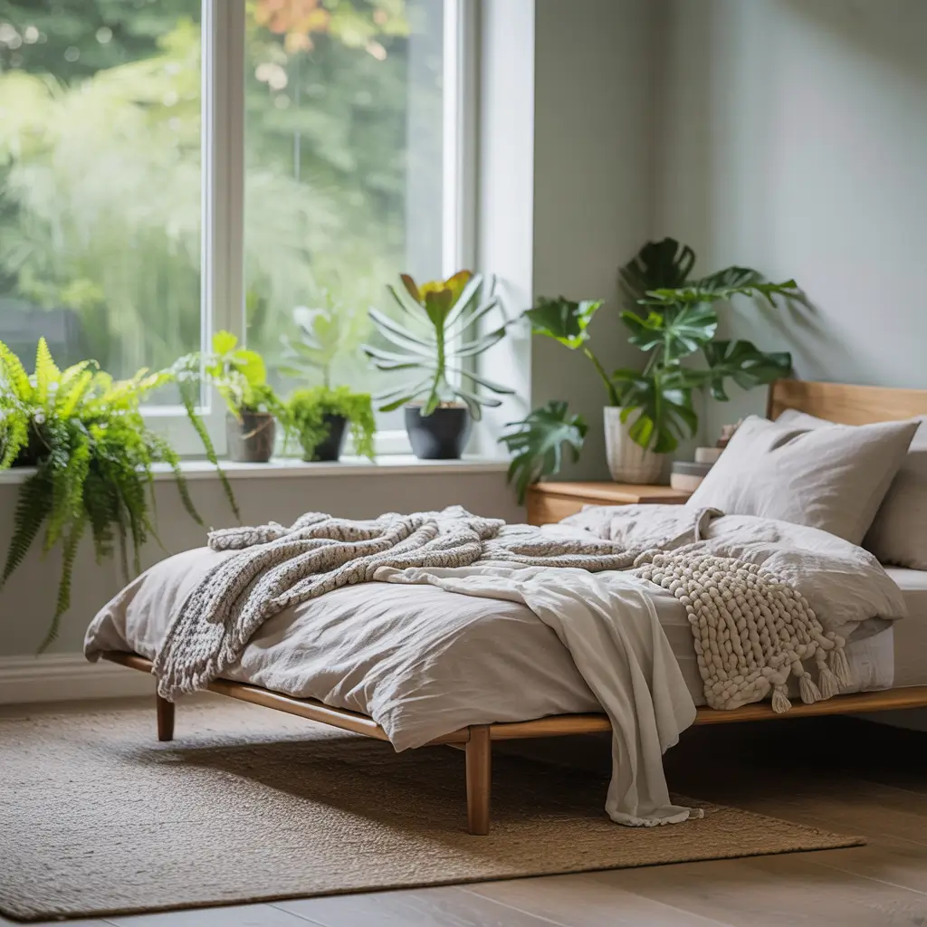 Minimalist Scandinavian Bedroom with Textured Bedding
