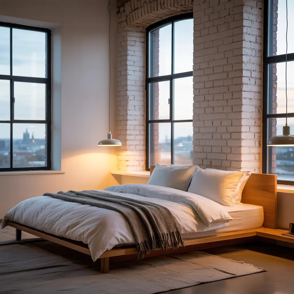 Now here’s where things get interesting. Mixing Scandinavian design with industrial elements creates a sophisticated urban retreat that feels both cozy and cool. Think exposed brick walls painted white, metal bed frames, and concrete accent pieces.