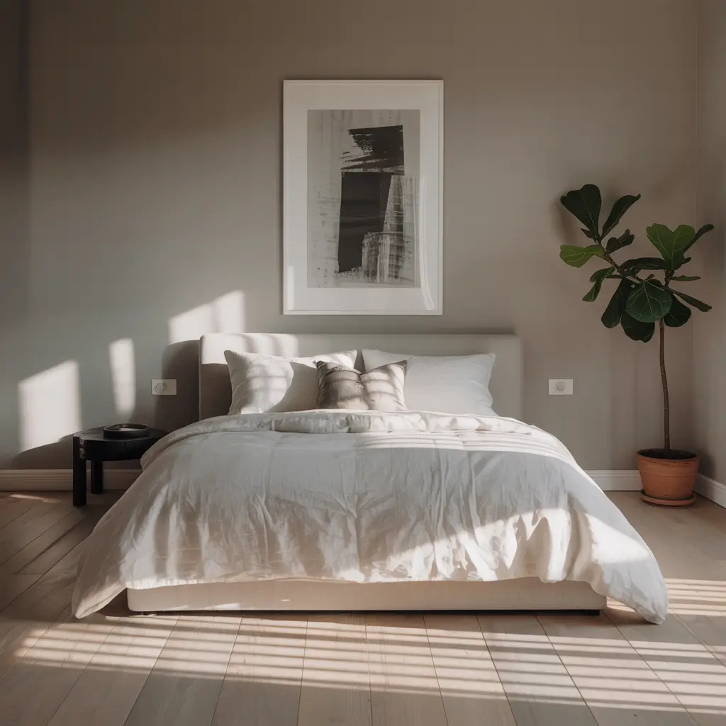 Wall art in Scandinavian bedrooms should enhance, not dominate. Think simple line drawings, nature photography, or abstract pieces in muted tones. The goal is creating focal points without visual chaos.