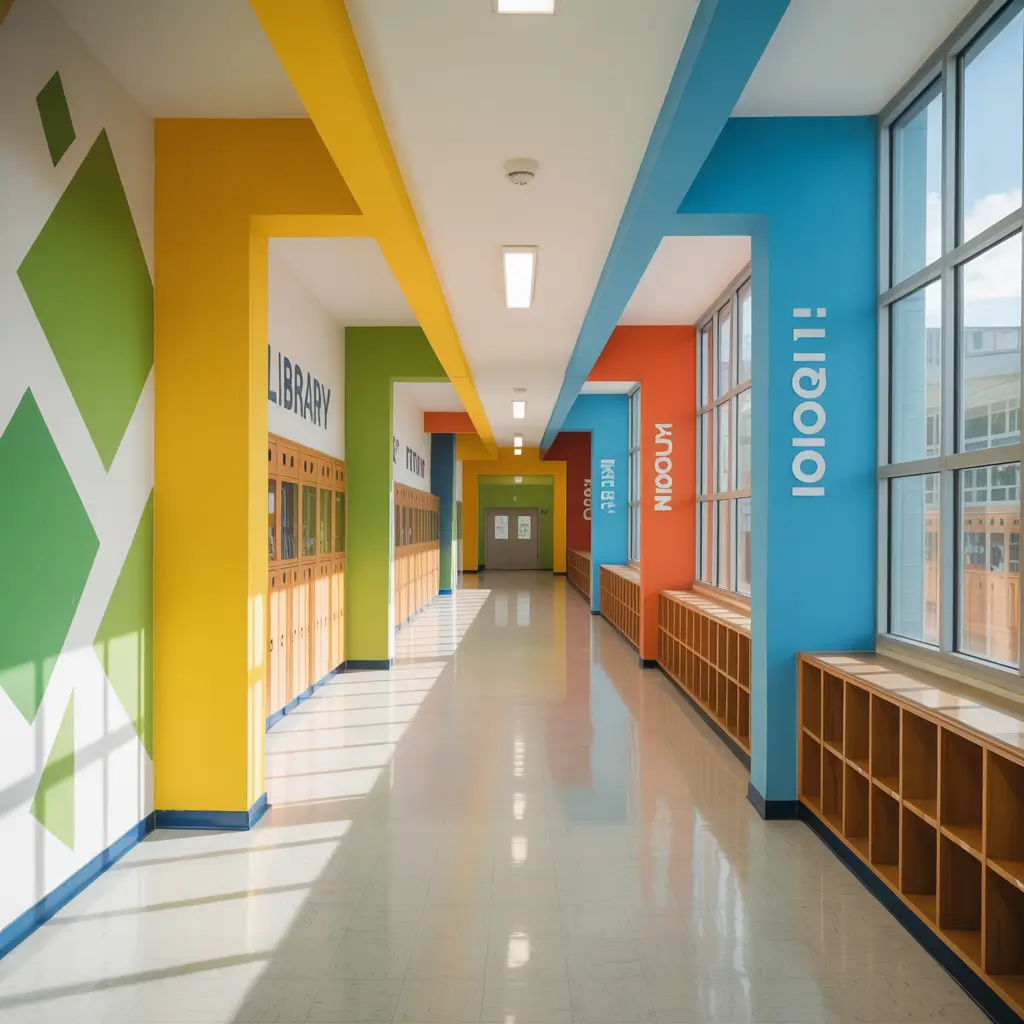 Here’s where it gets interesting: colors actually affect learning and behavior. Blue zones can promote calm and focus, making them perfect for areas near testing rooms. Yellow stimulates creativity – ideal for arts wings. Green reduces eye strain and promotes balance, perfect for high-traffic areas.