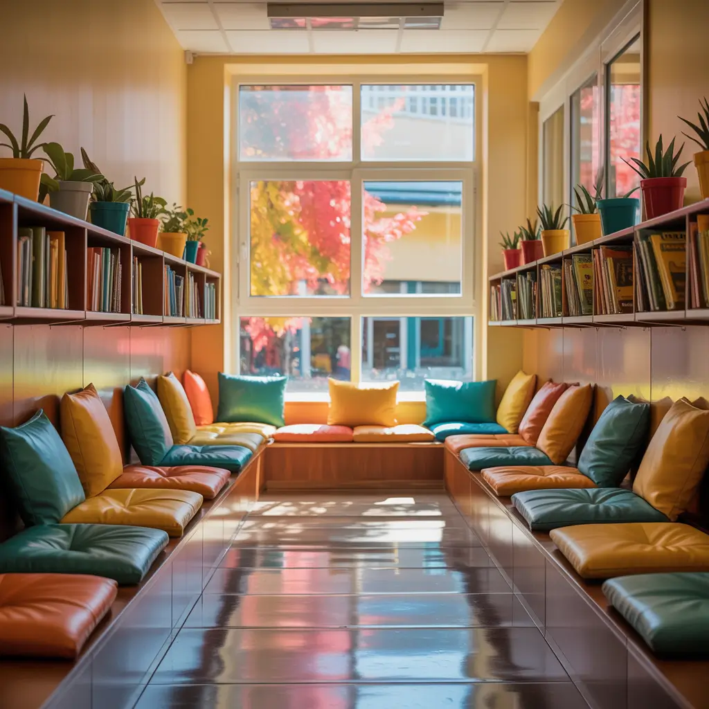 Who says reading only happens in libraries? Strategic placement of cozy reading nooks throughout hallways creates quiet spaces for students who need a mental break or arrive early to school. These don’t need to be elaborate – even a simple bench with some cushions works wonders.