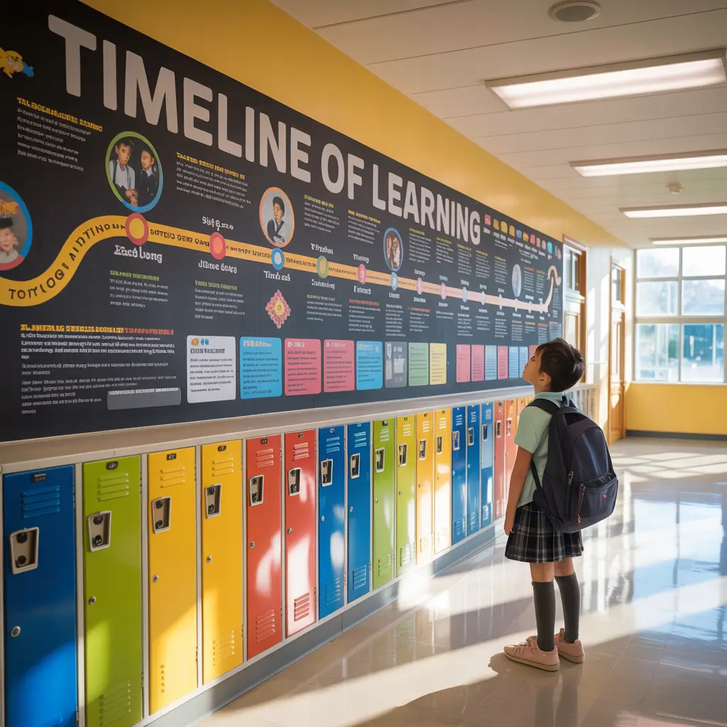 History comes alive when students can visualize it along their daily path. Timeline walls transform abstract dates into tangible narratives that students absorb almost unconsciously. But forget those boring, text-heavy timelines – we’re going visual and interactive.