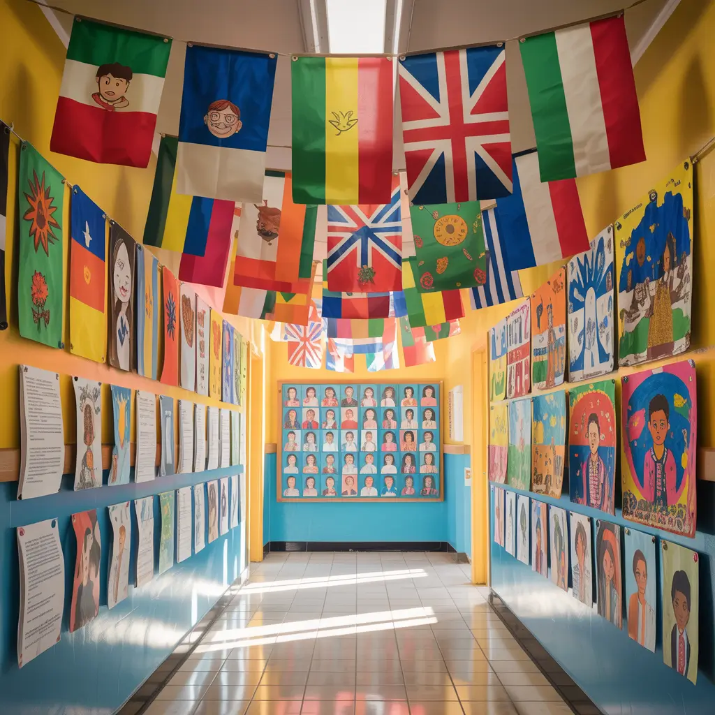 Involve cultural clubs, international students, and families in creating authentic displays. Include interactive elements like QR codes linking to music, language lessons, or virtual tours of countries. The goal is fostering understanding and appreciation, not just decoration.