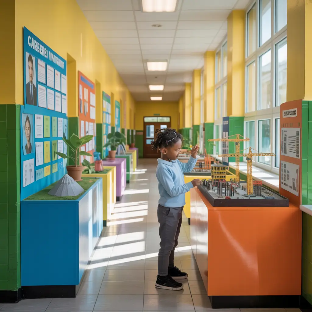 Students constantly wonder “when will I use this?” Career exploration corners answer that question by showcasing real professionals who use school subjects in their work. These dedicated spaces feature rotating displays about different careers, including education requirements, daily tasks, and local professionals in those fields.