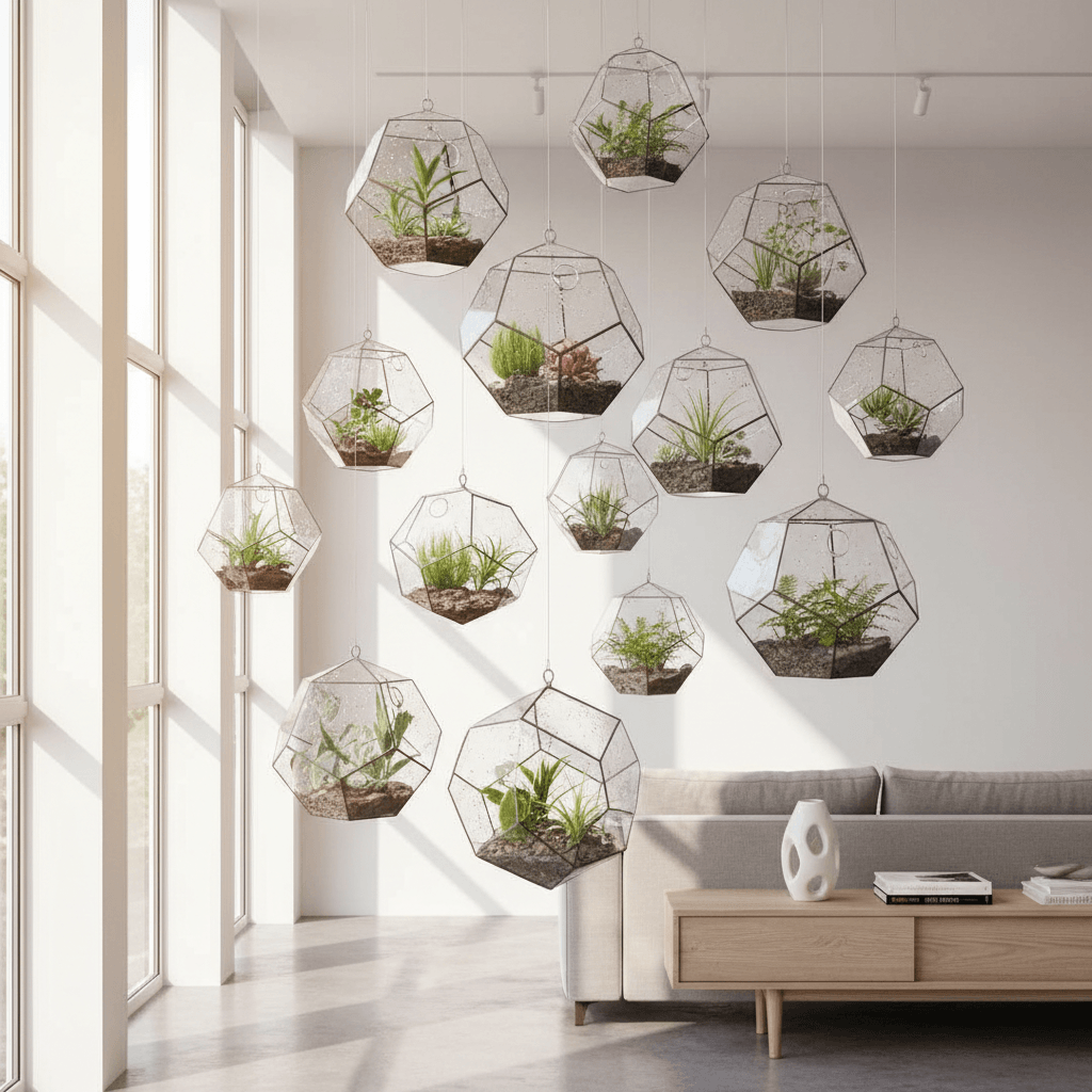 • Plants everywhere — Hanging, standing, trailing from shelves
