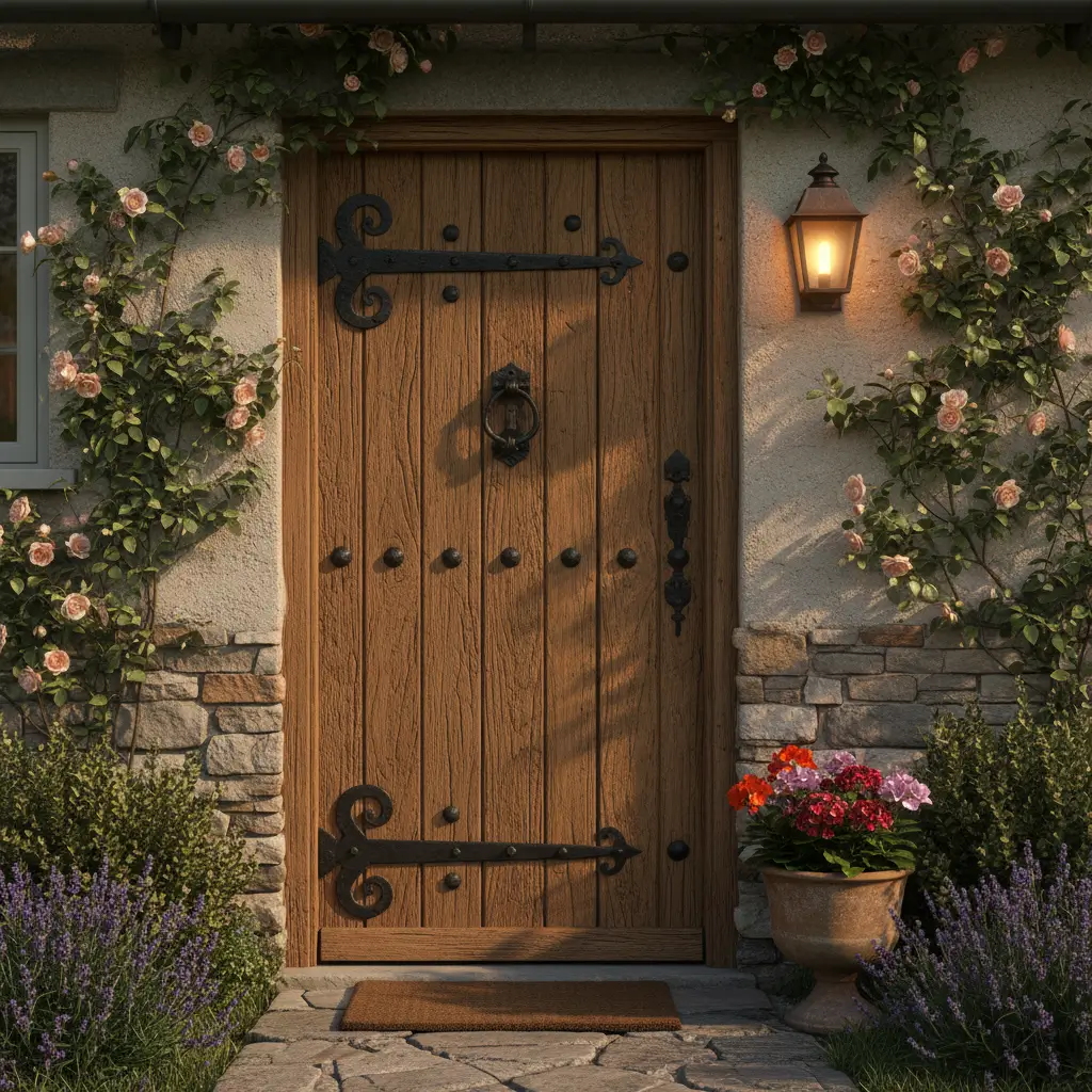 The genius of rustic security doors lies in hiding their strength behind authentic character. Thick hardwood construction, steel reinforcement concealed within wood frames, and heavy-duty hardware disguised as decorative elements create protection that doesn’t advertise itself.