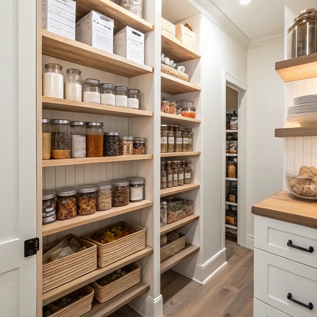 Layer textures for depth. My shelves display a mix of glass containers, woven baskets, and ceramic pieces. The variety keeps things interesting without looking cluttered.