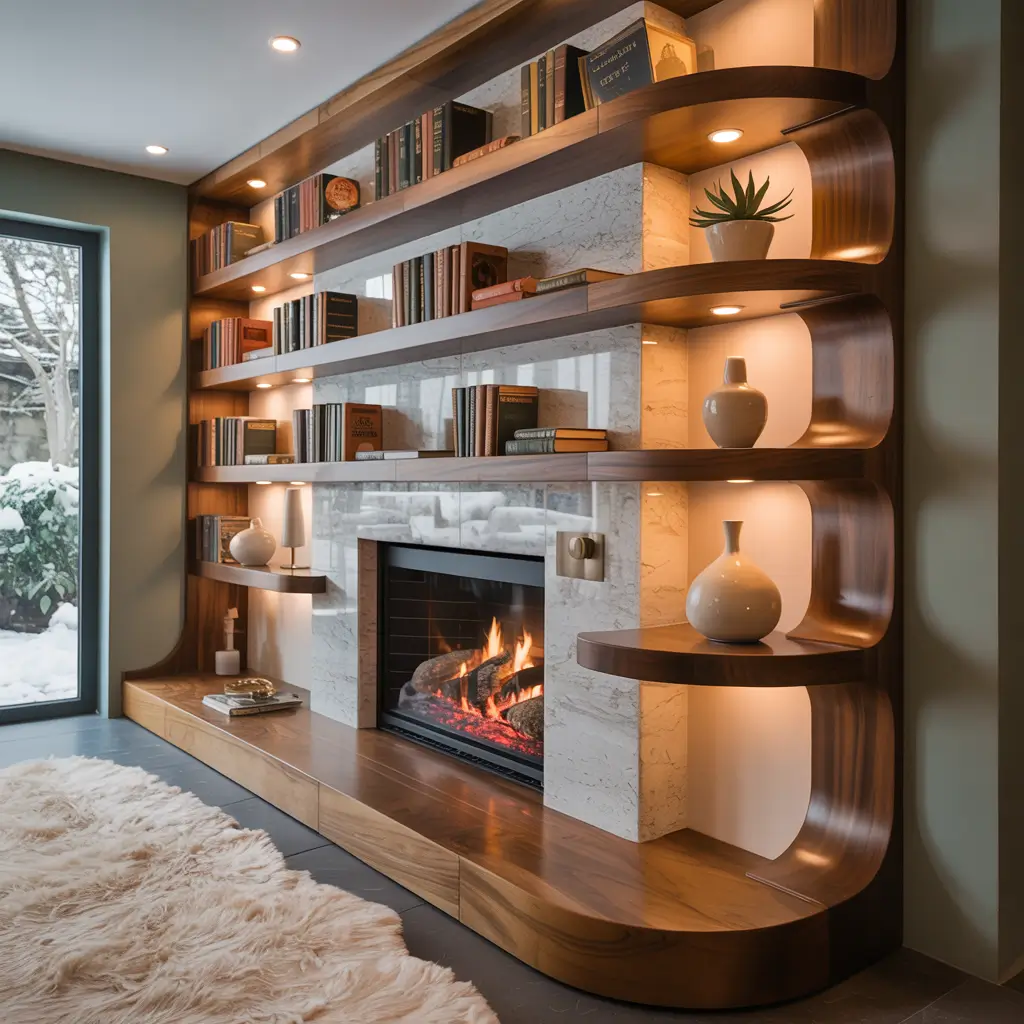 The graduated shelf depths naturally create visual interest and prevent that cramped feeling that standard shelves can give. Plus, they’re perfect for displaying items at different heights.