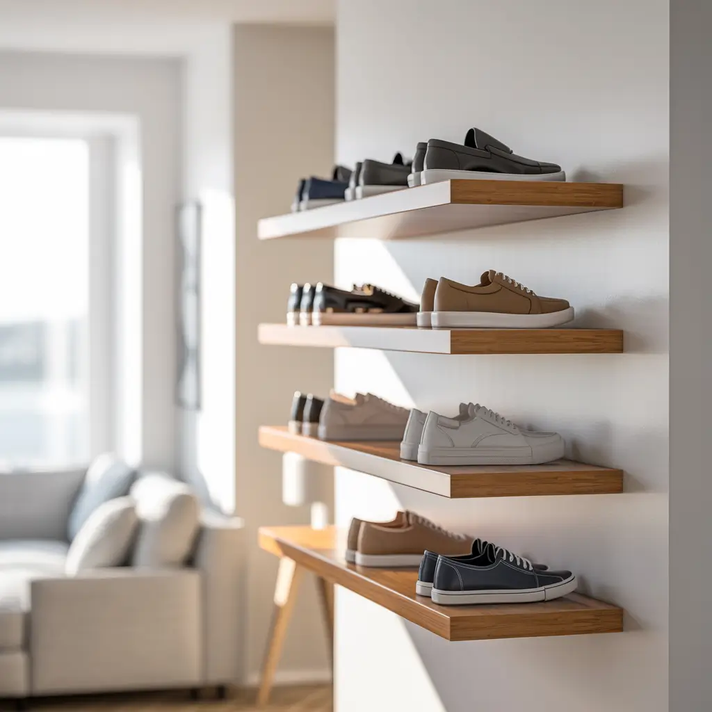 Floating Minimalist Shoe Shelves: The Space-Saving Dream