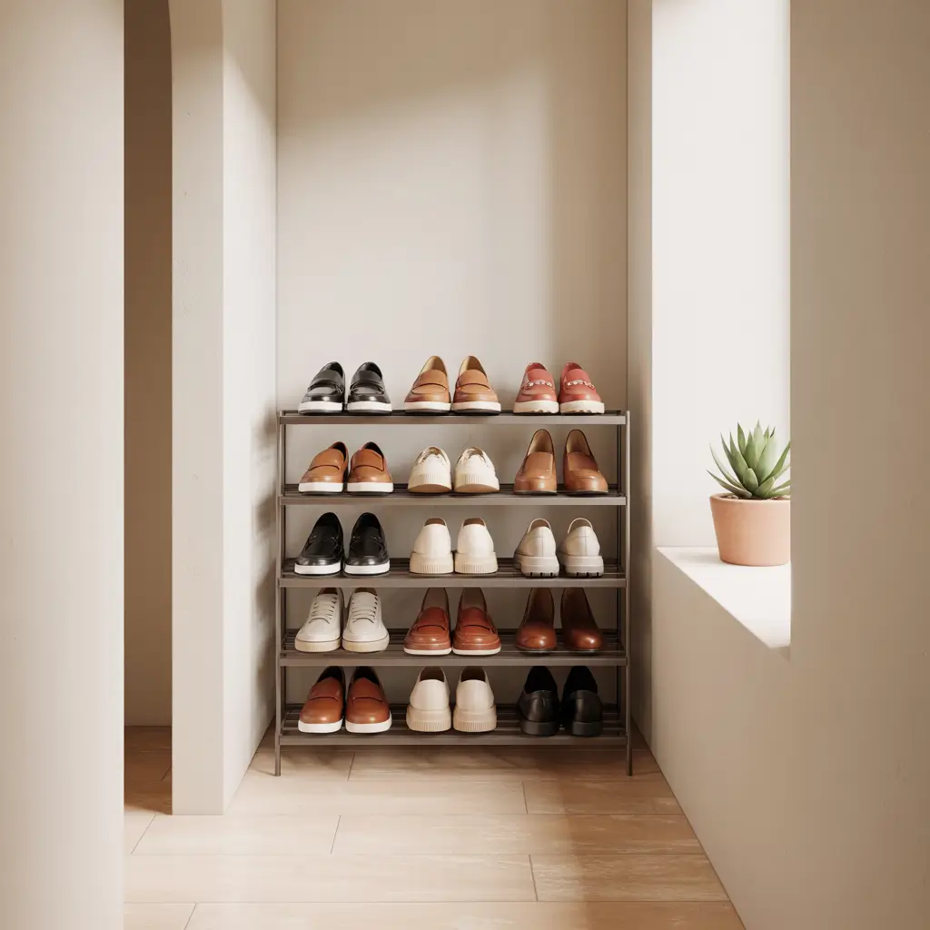Space tiers properly for your shoe sizes. I allow 8 inches for flats, more for sneakers and boots. Proper spacing prevents shelf overcrowding.