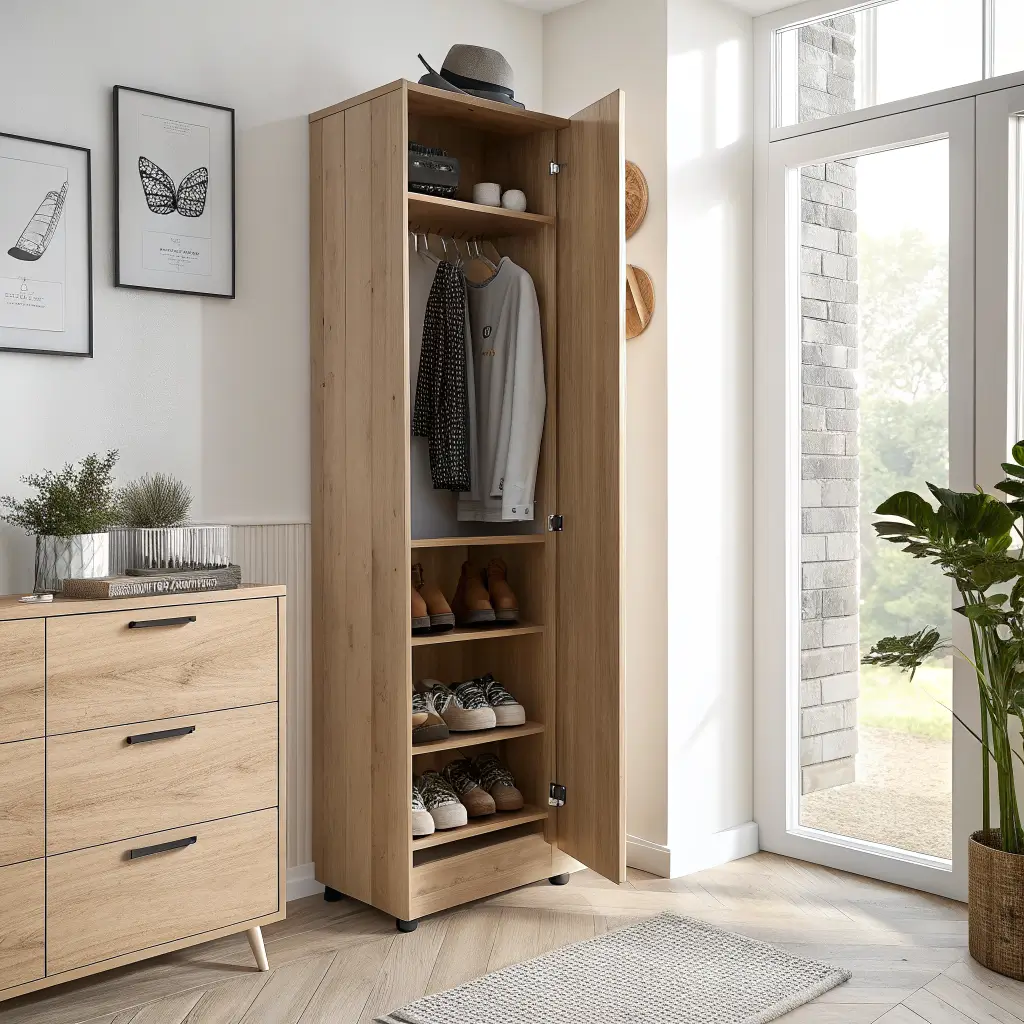 slim vertical shoe cabinet proves that limited space doesn’t mean limited storage. These narrow towers go up instead of out, fitting in spots you never thought could hold a cabinet.